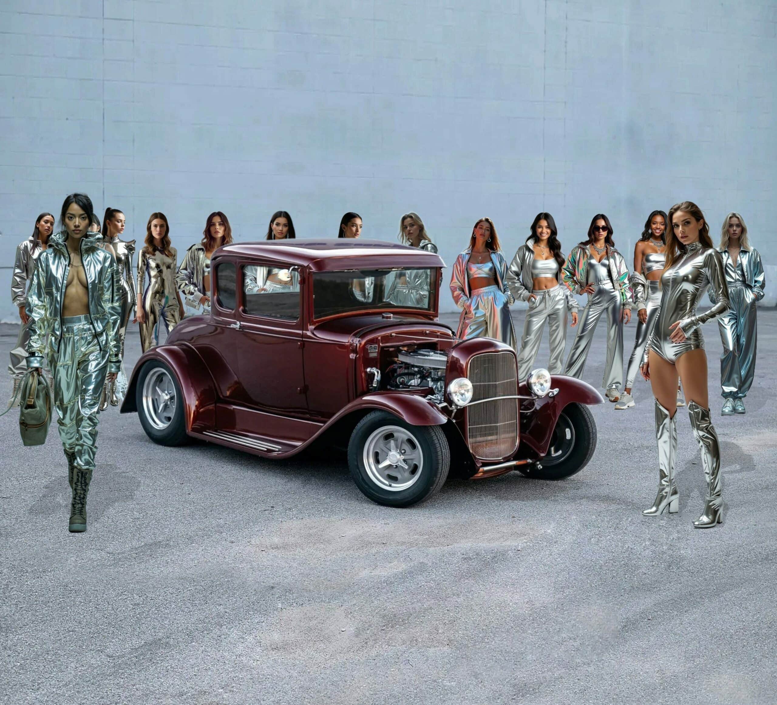 Ford Coupé 5 fenêtres Street Rod 1930 15 jolies jeunes femmes toutes en Chromes&Flammes entourant un p’tit Hot Rod, fêtent ChromeséFlammes… D’abord premier magazine en…