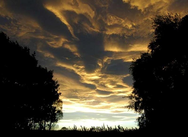 Nuées grasses et tourmentées et d’apparence si pesante, qu’on s’attend à les voir s’abattre sur les champs et les villes avec la violence du métal fracassé.