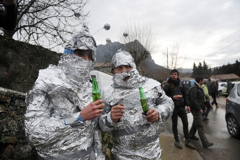 Là, quatre farceurs de Béziers se sont coiffés d’un entonnoir.