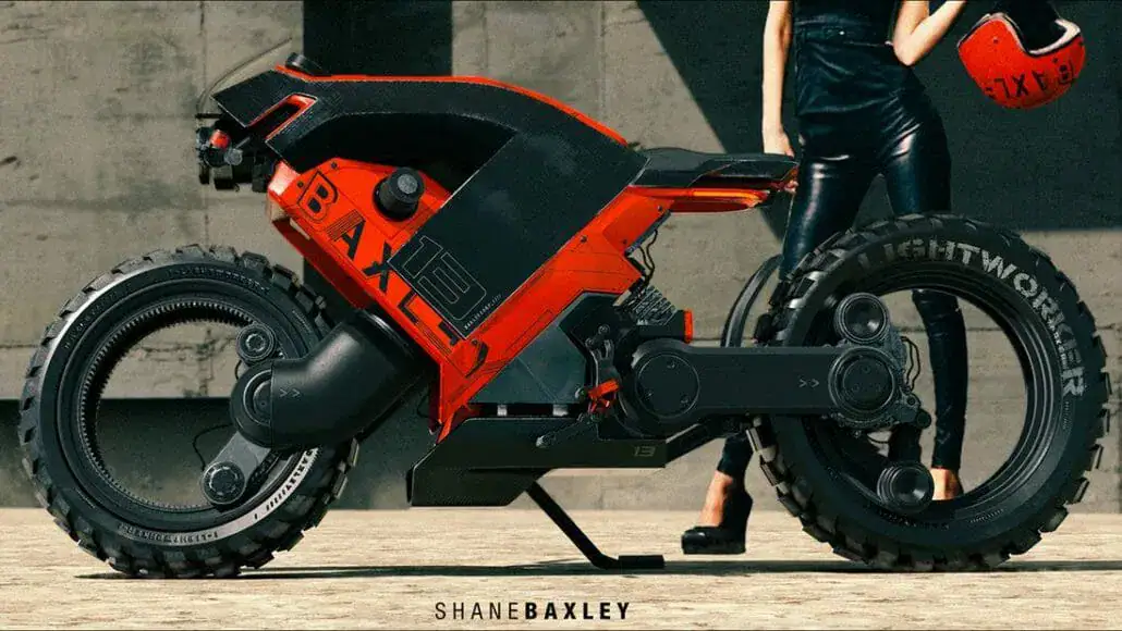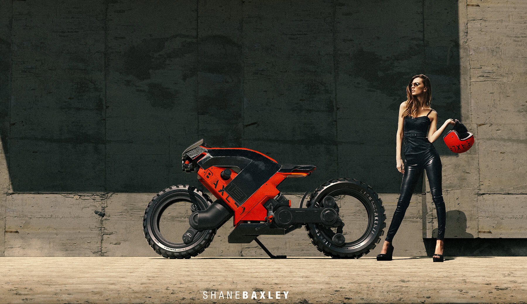 Baxley s’est également attaqué à la refonte inutile puisque plus fabriquées de la Chevy Camaro et de la Dodge Viper, ainsi que tout comme une Dodge Charger RT, dont j’ignore quelle fut l’étendue du massacre devant équivaloir à Fort-Alamo… Bien que mon coup de cœur reste en attente du magnifique remake de la Lamborghini Countach réalisé par des fans, s’étant dit-on inspiré du génie de Baxley… Sans nul doute science fictionesque… Shane Baxley ne s’est pas arrêté sur cette Mercedes, il a utilisé son ordinateur pour concevoir une moto électrique équipée de roues sans rayons.