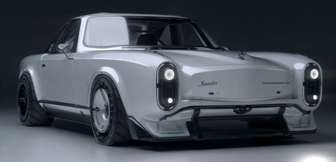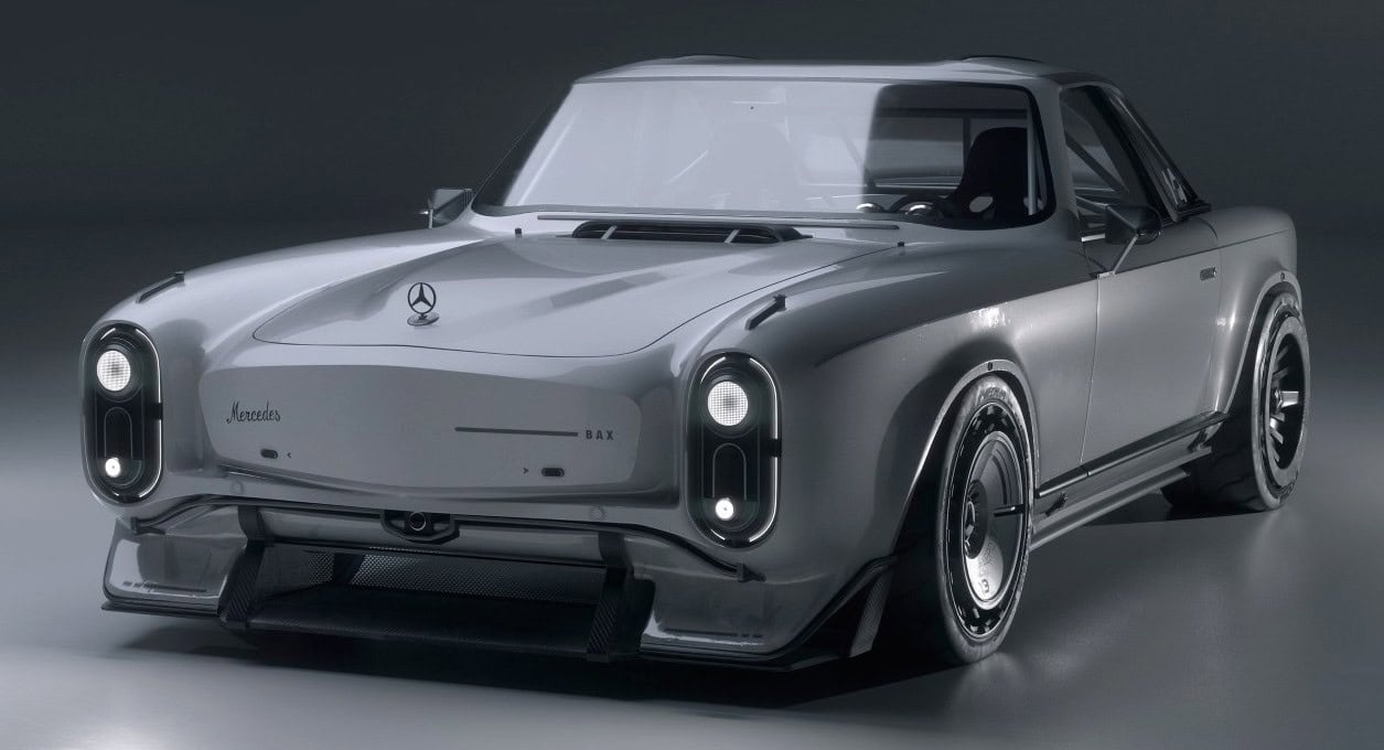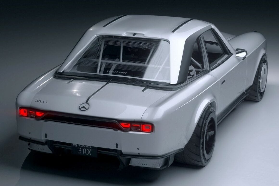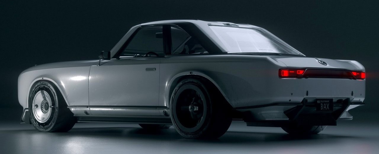 Certes, l’art conceptuel de Baxley s’est retrouvé dans divers films, notamment “The Transformers”, “Suicide Squad” et même “Alita : Battle Angel”. Mais ça ne l’innocente pas ! Bien qu’il soit prudent de dire que ce concept particulier est plus ancré dans la réalité que n’importe lequel de ses travaux de la franchise “Transformers”, il captive toujours par le sens de “ce qui aurait pu être si Mercedes avait décidé d’électrifier ses vieux classiques”. La 280SL originale qui dit-on (par erreur ou faussement) aurait été créée par Paul Bracq a en réalité été conçue par Friedrich Geiger…