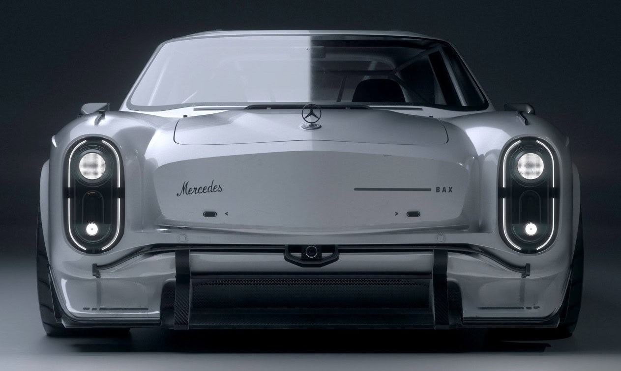 Geiger était également responsable de l’emblématique coupé Mercedes 300SL “Gullwing”. Plutôt que de réinterpréter l’ensemble de l’esthétique retouchée à l’époque par Paul Bracq, Shane Baxley est resté fidèle à la vision originale de Friedrich Geiger, en s’appuyant sur une retouche légèrement modernisée de la carrosserie et en supprimant les pare-chocs chromés ouvertement rétro pour quelque chose qui se voulait un peu plus contemporain, mais qui en fait s’avéraient pire design. Pour tout passionné, la refonte a l’air absolument indubitablement grotesque.