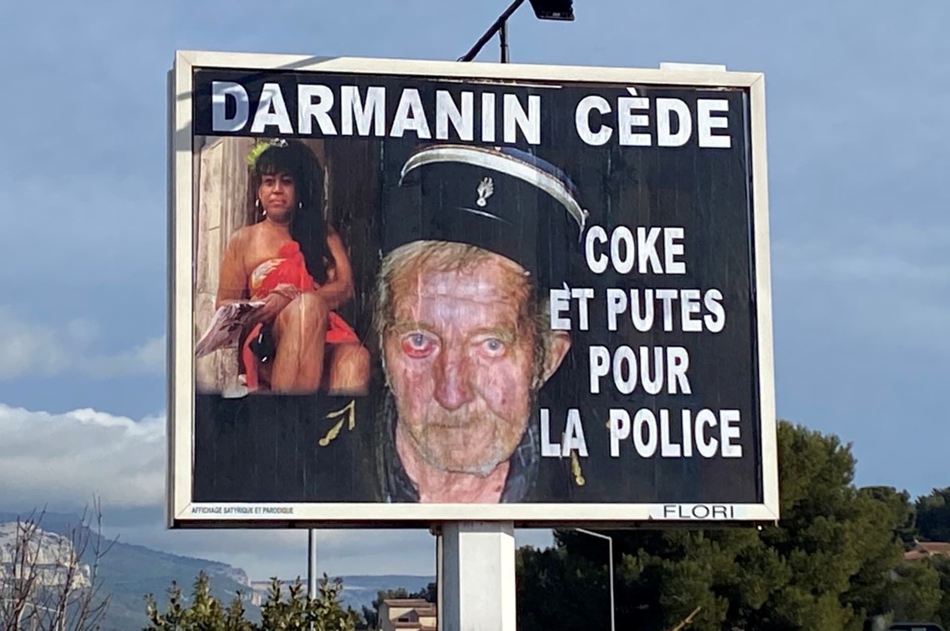 Michel-Ange Flori, publiciste, est un homme écœuré et fatigué des injustices, qui a résolu d’utiliser son droit à publier son point de vue de manière satirique sur un ou deux panneaux de son réseau. En 2019, en pleine crise des gilets jaunes, il avait placardé une autre image satirique et humoristique : “La police vous parle tous les jours sur BFM-TV”... cela parce que cette chaine semble ne diffuser que des informations tronquées sans que quiconque ne puisse s’opposer à ces matraquages unilatéraux ! Michel-Ange a invoqué la liberté d’expression et la satire pour justifier l’affichage de son point de vue citoyen !