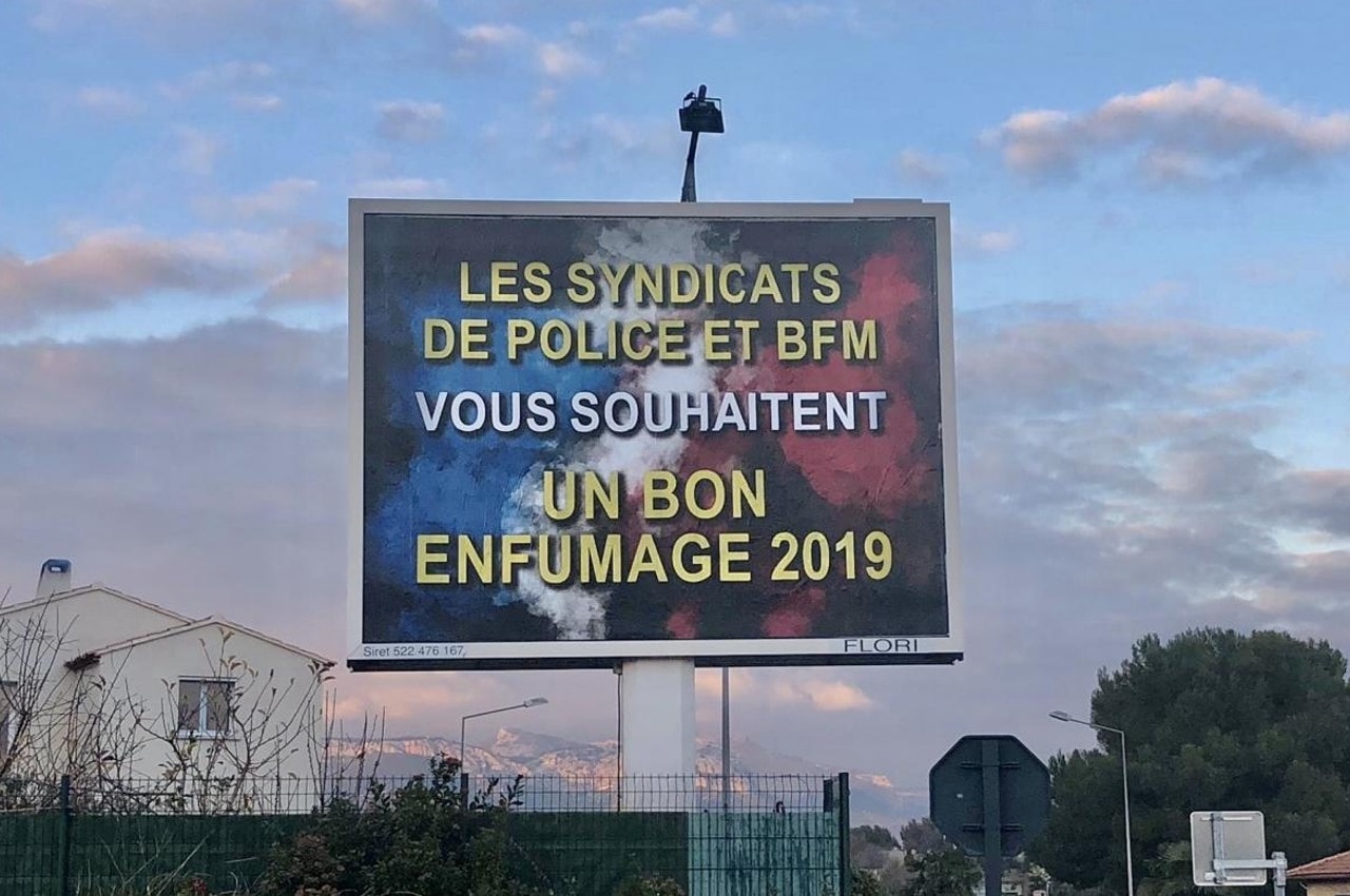 -Vous n’hésitez pas à prendre des risques puisque vous avez été condamné à verser 32.000 euros à BFM TV pour une affiche sur laquelle était inscrit “La police vous parle tous les jours sur BFMTV”… Ce qui ne vous retient visiblement pas de continuer…