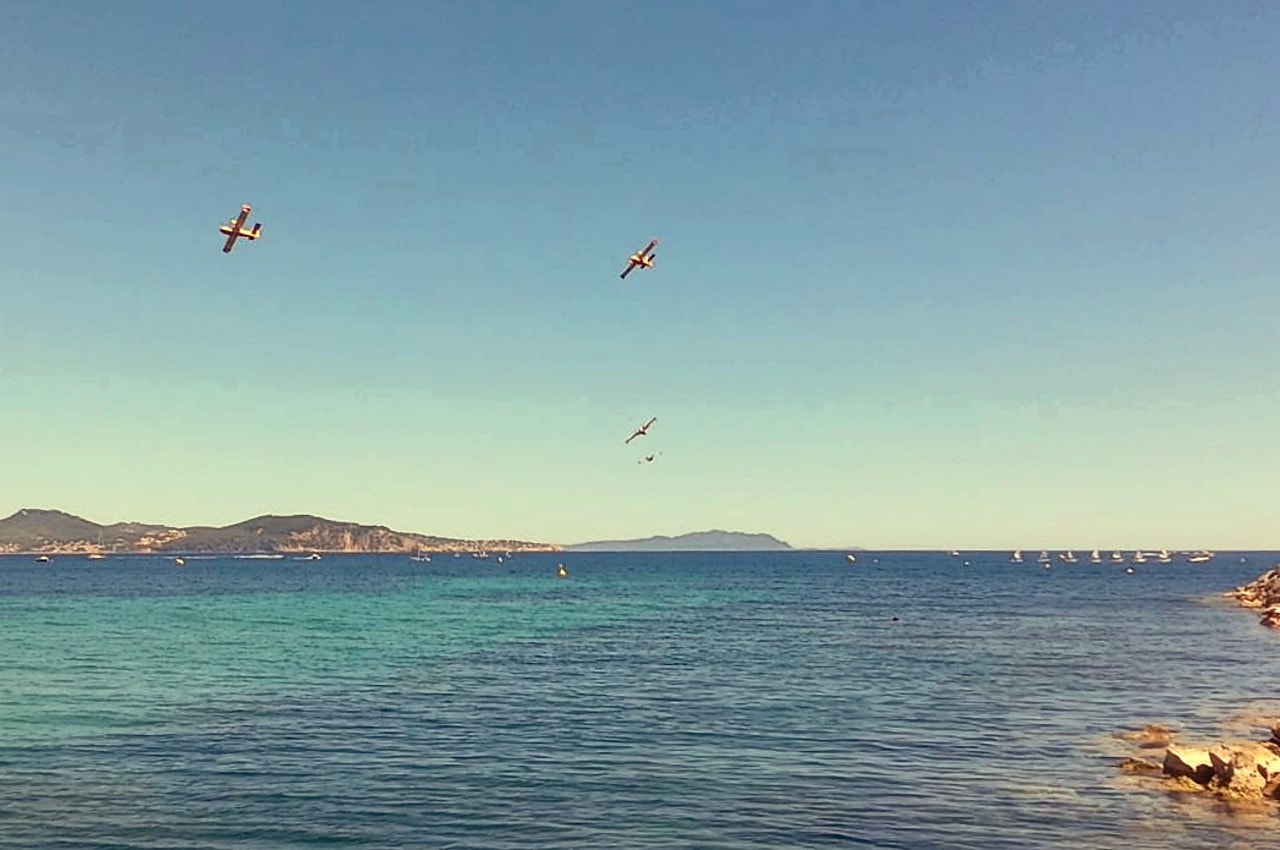 C’est pas qu’un seul incendie à la progression désespérante détruisant plus de 1.300 hectares de terrain sur les communes touristiques de Bormes-les-Mimosas et La Londe-les-Maures…, non il y en à d’autres, partout, jusqu’aux limites de Fréjus…., d’où nécessité de l’évacuation massive de plus de 12 000 personnes, dont 3.000 campeurs.