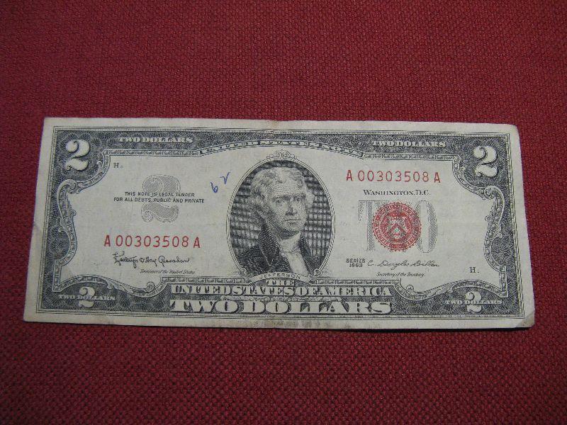 United States Notes (characterized by a red seal and serial number) were the first national currency, authorized by the Legal Tender Act of 1862 and began circulating during the Civil War.