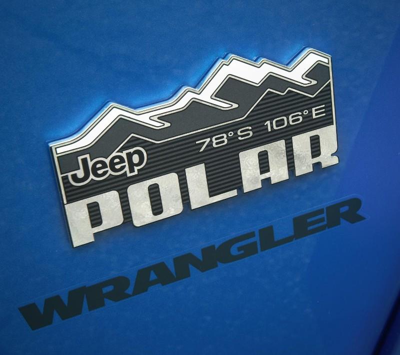 Dotée de jantes alliage 18 pouces noir brillant, d’un hard-top couleur carrosserie et d’accessoires Mopar originaux, la Jeep Wrangler Polar sera disponible en Europe au premier trimestre 2014, en versions 2 ou 4 portes, et équipée du moteur turbo Diesel 2L8 de 200 chevaux ou du V6 essence 3L6 développant 284 chevaux… Le constructeur a estampillé des logos “Polar” sur le capot et les ailes. On y découvre les coordonnées GPS 78° S et 106° E, qui correspondent à Vostok, en Antarctique, c’est là que la planète a enregistré la température la plus froide jamais répertoriée avec -89,2 degrés !