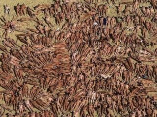 Les gnous se tartinent le corps de crèmes anti-soleil pour s’exposer au soleil…, par crainte du cancer (est-ce en vue de la résurrection des corps ?), une quasi-obligation “vacancière”, chaque année, au même moment, des millions, des centaines de millions, des milliards de corps, parfois beaux, souvent moches, toujours laids… avachis, vautrés dans des poses imbéciles pour rôtir du soleil…