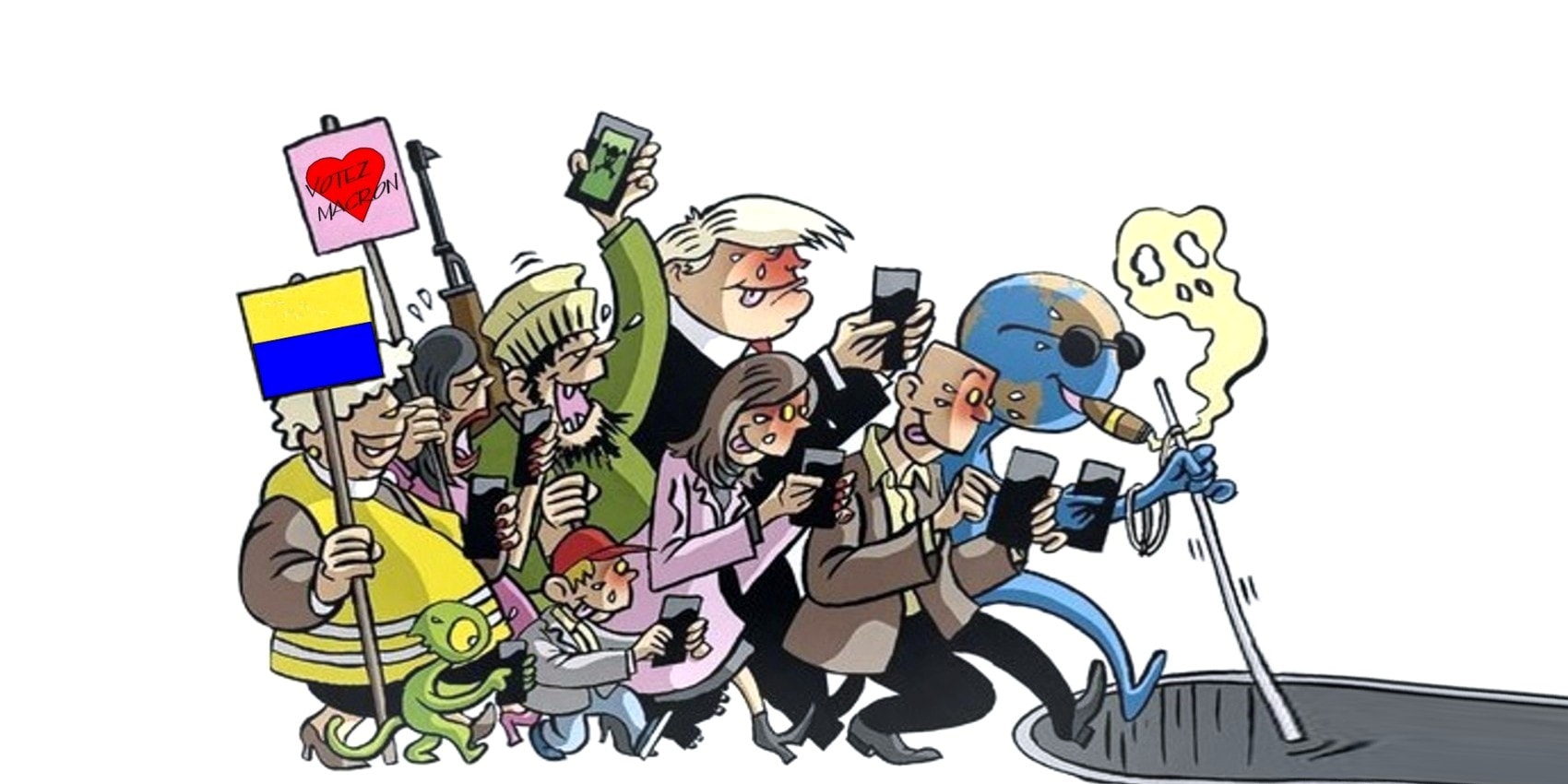 La phase 2 c’est la poudre (des machines) aux yeux. Jusqu’à saturation. Les infos ont toutes été couplées/branchées sur la pensée unique gouvernementale entre un déluge d’émissions infantilisantes de mauvais desseins animés de stupidités destinés à pervertir les âmes nobles et candides… et des retransmissions de “sportivités débilitantes” de (exemple au hasard) joueurs milliardaires se disputant un ballon de quelques euros… La presse (papier et TV) est devenue un agglomérat merdiatique, aux ordres de leurs patrons milliardaires et par des aides d’Etat, par milliards d’euros, permettant un contrôle total de l’information ainsi biaisée, truquée, sans plus aucune contradiction possible, instaurant le règne des vraies “Fake-news-authentiques” qui, comme les versets de la Bible au Moyen-âge ne peuvent être remises en cause sous peine de sanctions, d’excommunications sociales, sociétales, car les paroles du Grand-Macron sont l’évangile de Sainte Europe héritée des tables des lois américaines !