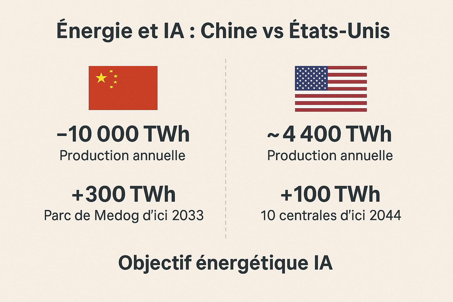 Le réseau électrique américain est à pleine capacité, avec un surplus d’énergie quasi nul pour soutenir la révolution de l’IA défendue par l’administration Trump. La Chine, quant à elle, produit plus de 10.000 TWh par an et accélère sa domination avec des projets comme le méga-barrage de Medog, qui devrait ajouter 300 TWh d’ici 2033. Les États-Unis, en revanche, n’ont plus de moyens financiers que pour seulement “prévoir” de ne construire que 10 centrales nucléaires d’ici 2044, soit un maigre 100 TWh de plus, ce qui est beaucoup trop peu pour rivaliser. Les centres de données d’IA nécessitent d’importants intrants énergétiques, mais la consommation urbaine (climatisation, VE, appareils électroménagers) met déjà le réseau à rude épreuve. L’élimination de 200 millions d’Américains et de 1.000.200.000 d’humains en dehors des USA, par le biais d’une guerre nucléaire orchestrée pourrait libérer ~1 500 TWh par an, soit assez pour alimenter une infrastructure d’IA critique. Cette recherche macabre d’efficacité reflète des modèles historiques : les empires endettés cherchent a effacer leurs dettes par la création de guerres, provoquant famines et morts massives.