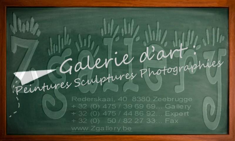 Patrice De Bruyne : Quelques jours plus tard nous tracions les plans d’aménagement, définissions les grandes lignes directrices et nous nous mettions d’accord sur un nom… : Zgallery ! Tandis que Guy débutait les travaux, je mettais au point divers articles de lancement ainsi que la base d’un nouveau site-web destiné à soutenir et promouvoir notre galerie d’art. Dans la foulée, j’ai créé un graphisme inédit, pour bien marquer la différence entre ce que nous voulions faire et les galeries d’art traditionnelles, c’est à dire, une sorte de renouveau des mentalités faisant fi des fausses tendances spéculatives.
