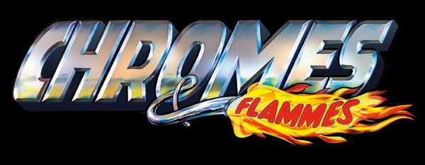 Le titre et le logo Chromes & Flammes, me dit-on souvent, fut un coup de génie amplifié par son logo de la partie “Flammes” sortant du “&” commercial sous forme d’échappement. Ouaissss ! Possible… Mon coté puriste du design m’avait amené à ne pas écrire “Flammes” dans les flammes ce qui me semblait aussi inutile qu’écrire “chapeau” sur un chapeau ! Dans cette logique, le mot “Chrome” où “Chromes” devait être chromé et en forme du logo d’identification sur les flancs ou le cul des automobiles. Finalement le logo se suffisant en tant que tel car venant des magazines orientés Kustoms, Hot-Rods et Dragsters à poussé à la création d’un second magazine présentant des voitures de luxe symbolisé par la calandre des Rolls-Royce. Le titre “Calandres” est venu de là et s’est avéré inapproprié car, peu après, les “calandres” automobiles ont commencé par Mercedes à faire place à des bouches béantes édentées… L’idée première de regrouper les magazines sous “Chromes” sans la mention “Flammes” est alors venue se télescoper avec une délation fiscale de 117 millions de mon con-curent copieur. L’édition américaine se nommant “Top-Wheels” n’a pas eu à se battre pour ce souci !