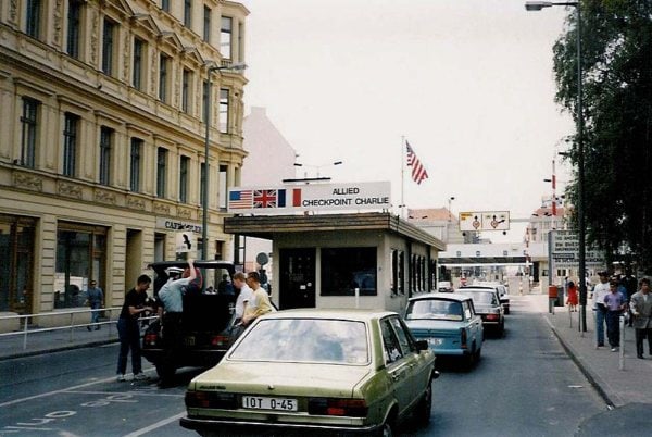 Le Checkpoint Charlie était toujours en activité et, sur la photo ci-dessus, on peut voir que, côté allié, on contrôlait encore les véhicules !