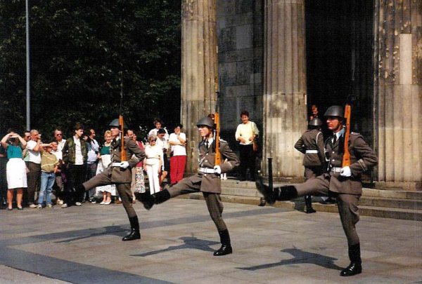 Et les soldats de la RDA étaient à leur poste, la relève étant effectuée au pas de l’oie à la grande joie des spectateurs qui n’en attendaient pas autant :