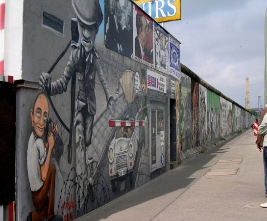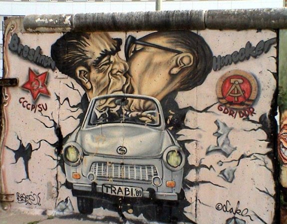 Rebaptisé “East side gallery”, ce fragment du mur est en fait un attrape-couillons pour touristes, les illustrations étant du plus parfait mauvais goût :