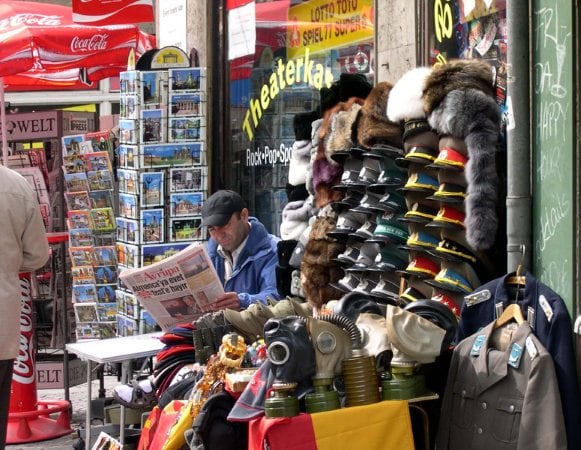 Il était devenu la principale attraction de la ville pour les touristes qui en profitaient pour se faire photographier devant le fameux mur qui était “tombé” en novembre 1989 ! En fait, le mur n’avait été que très légèrement égratigné et quelques trous y avaient été percés permettant de voir ce qui se passait de l’autre côté, c’est-à-dire finalement pas grand chose car, de l’autre côté, dans un no-man’s-land séparant deux murs, il ne se passait absolument rien.