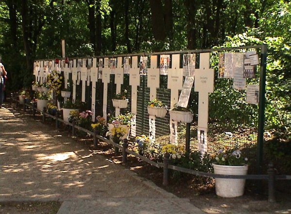 Également, notamment derrière la Porte de Brandebourg, par des petits monuments rappelant le sacrifice de ceux qui ont trouvé la mort alors qu’ils ne recherchaient que la liberté :