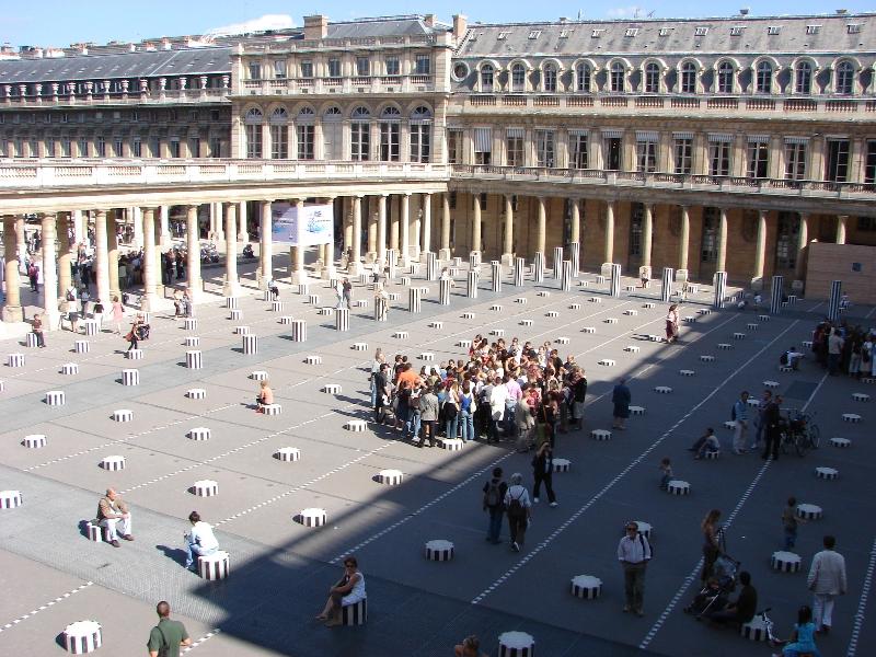 Cet ensemble monstrueux occupe désormais les 3.000 m² de la cour du Palais Royal, petit chef-d’oeuvre d’architecture et haut lieu historique situé dans le premier arrondissement de Paris au nord du palais du Louvre. Il a été construit à la demande du cardinal de Richelieu par l’architecte Jacques Lemercier à partir de 1622.