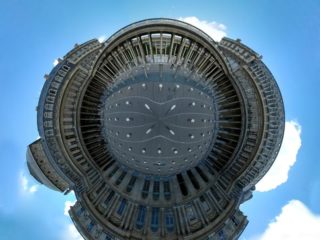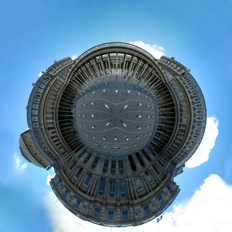 A voir ses colonnes on pourrait imaginer qu’il faut y voir un hommage au talent des architectes grecs de l’Antiquité, ce principe de l’alternance de bandes verticales claires et foncées se retrouvant dans le fût des colonnes doriques !