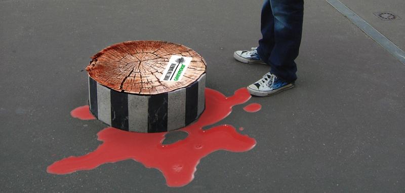 Sauf quand Greenpeace a eu l’idée géniale d’utiliser les colonnes de Buren pour dénoncer la déforestation du monde, en y appliquant des auto-collants…, c’était bien là, un moyen original d’arrirer l’attention !
