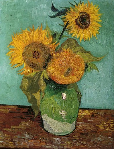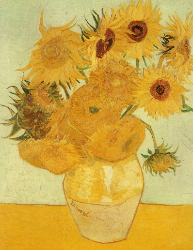 A titre d’exemple, entre autres…, Les Tournesols de Van Gogh, quelques soient leurs versions (Les Tournesols est le nom attribué à chacun des sept tableaux peints à Arles par Vincent Van Gogh en août 1888 pour les quatre premiers tableaux qui composent la série proprement dite et en janvier 1889 pour les trois derniers, appelés les Répétitions).., valent donc des montagnes d’or, quoique Van Gogh avant de mourir dans la misère, échangeait ses peintures contre des croûtes comestibles…