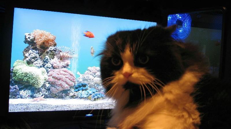 Ca doit être la fin…, les symptômes d’un abattement général, je me sens rejeté de tous… bof… Même le chat a vomi… Par contre j’ai trouvé un aquarium en écran de veille, alors ce soir je vais le regarder pour retrouver une certaine sérénité, avec mon chat qui aime aussi cet aquarium…, mais j’ai peur que pendant la nuit il tente d’entrer dans l’écran ou d’aller voir derrière et ronger les cables…