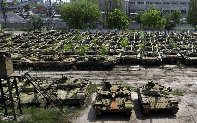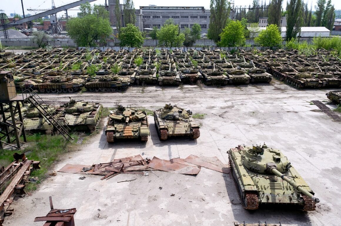 En 2014, la plupart des chars de l’Ukraine ont été entreposés ici… il y a plus de 2.000 tanks en attente de rénovation dont une centaine en parfait état de marche et fonctionnement… sans compter assez de pièces pour en fabriquer 500 de plus… Avant que les USA financent et organisent le coup d’état dit de la Place Maïdan, le ministère de la défense Ukrainien (qui était déjà néo-nazi), avait signé le 27 avril 2009, un contrat avec l’entreprise d’Etat Malysheva (dirigée par Nikolaï Belov) sur la modernisation de 29 chars T-64 Bulat BM, dans le cadre d’un programme de modernisation des chars T-64 pour les besoins des forces armées de l’Ukraine et les décisions de la réunion du premier ministre Ukrainien du 6 mars 2009, visaient à faire revivre l’entreprise de défense. Depuis lors, rien de neuf si ce ne sont les jérémiades débiles du Président Volodymir Zelensky qui s’en met plein ses coffres-forts !