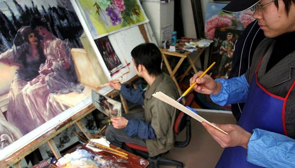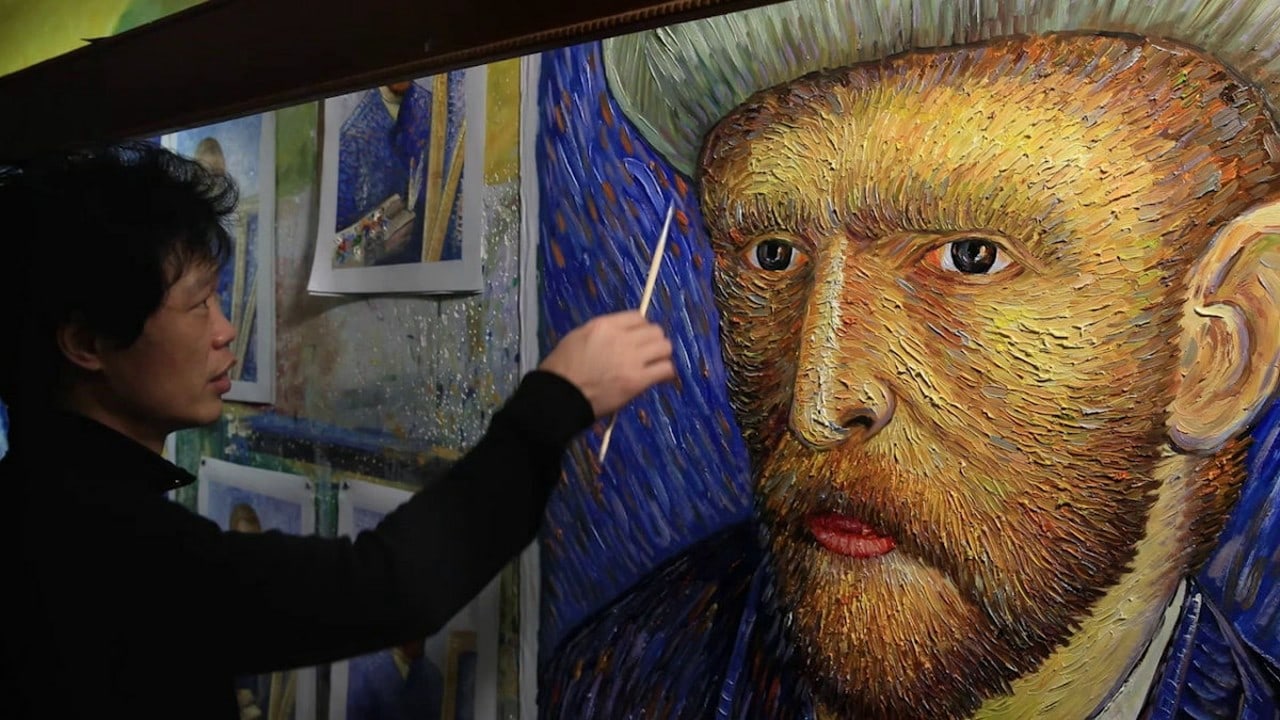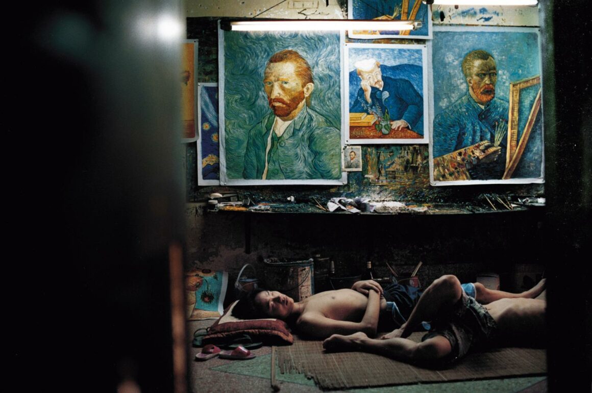 Jusqu’en 2009, 70 % des peintures à l’huile vendues sur les marchés européens et américain proviennent de Chine. Parmi elles, 80 % sont produites à Dafen, surnommé “le village de la peinture à l’huile” (大芬油画村). Selon le recensement de l’Association des artistes de Dafen, pas moins de 1.200 galeries et boutiques, et plus de 8.000 artistes et peintres sont dispersés dans ce morceau de terre d’à peine un demi-kilomètre carré. Depuis 2006 la valeur annuelle des exportations du village est de plus de 100 millions de dollars ! Sur 17 ans cela représente un milliard sept cent millions de dollars ! Une commande de 200 copies de tableaux de Van Gogh ne choque personne. Pour respecter leurs délais, les peintres dorment et mangent par terre, entre les cordes à linge où sèchent les toiles et les odeurs des peintures. Zhao Xiaoyong pendant plus de quatre ans a peint environ 100.000 copies d’œuvres de Van Gogh sans avoir jamais vu un tableau original.