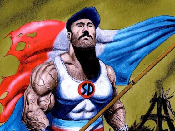 Aux bons élèves de l’ordre et de la raison, on a fait répéter “Je suis Charlie” comme on leur fait répéter “Je vous salue Marie” depuis des siècles. Au nom de la Défense, celle des guerriers de l’OTAN et celle, parisienne, des barbares de la finance, on a fait sortir de leurs trous plus de rats exquis que cent tabassages d’Amazigh ou cent fermetures d’usines ne le feraient. On a, pour cause, hissé la petite grande sœur de la grasse ‘Liberté’, que même ce frère trois-points colmarien de Bartholdi ne reconnaîtrait plus. Elle a la poitrine aussi généreuse qu’un pré de la fin de Mai… et qu’on promet à tous les étalons qui paissent dans son enceinte. Avec sa taille d’araignée, ses dents blanches et sa perruque blonde, elle affiche, c’est vrai, plus d’avantages que les spectres étourdissants d’Égalité et de Fraternité qui hantent encore du côté des Tuileries et dont on ne sait trop bien que faire. L’esprit Charlie, nouvel avatar de la pensée dominante et le laïcisme agressif qui est sa marque de fabrique dessine les contours d’une nouvelle religion, concurrente de toutes les autres…, une religion qui n’ouvre pas les portes du Paradis mais celles d’un monde où la seule liberté qui existe est de pousser son chariot de supermarché, de laver son cerveau avec la télévision et de se faire tondre à l’occasion…