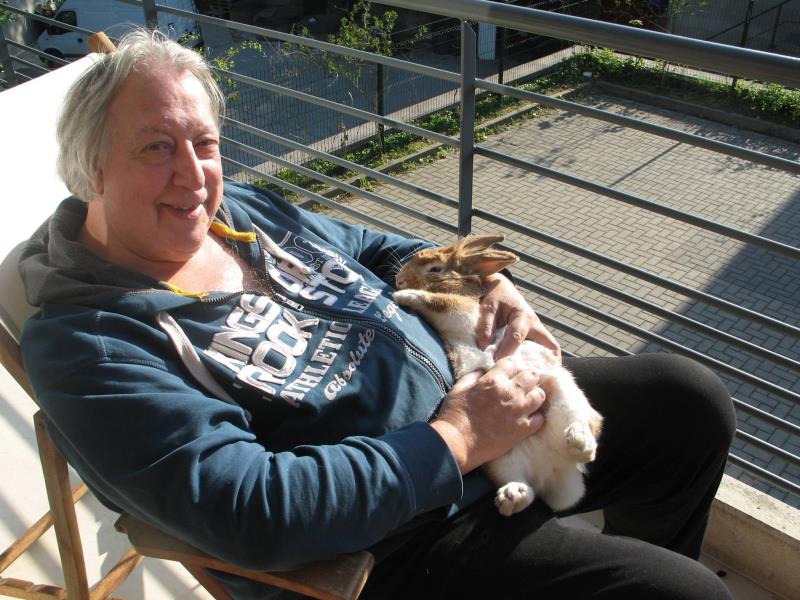 Moi, vois-tu, j’aimais quand tu souriais, quand tu riais, quand Bibi tournait autour de toi en ronds d’amour infinis, quand P’tit blanc tapait de la patte, quand tu prenais un café près de leur clapier, qu’ils venaient renifler ton odeur d’amour, que Bibi dormait sur le dos dans son foin odorant… et que Gypsie, un peu jalouse venait chiper leurs croquettes…
