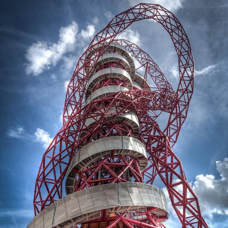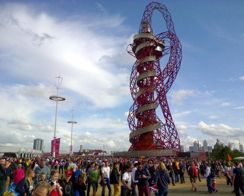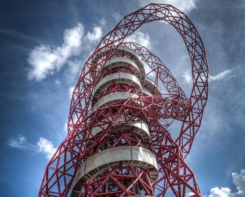 C’est la “tour Mittal”, à mi-chemin entre l’œuvre d’art et le centre d’observation, conçue par l’artiste Anish Kapoor, d’origine indienne et financée en grande partie par Lakshmi Mittal.