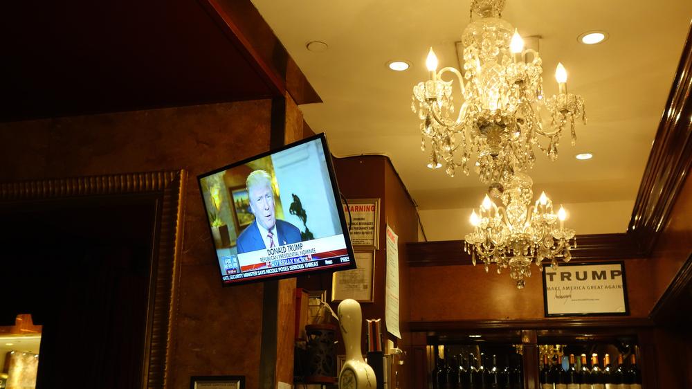 Enfin, à quelques tables plus loin, un type assez âgé en costume cravate passe son temps à me regarder, les sourcils froncés…, je parie que c’est un espion à la botte de Trump, chargé de garder un œil sur les gens comme moi, venus au “Trump Bar” dans le seul espoir d’entrevoir de l’intérieur ce qu’ils imaginent être le culte des militants pro-Trump…