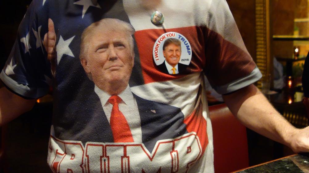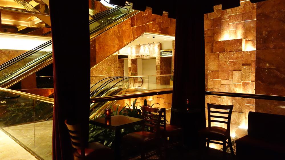 Toutes les tentatives pour en mettre plein la vue sont un échec quand on entre dans le “Trump Bar”…, pour y arriver, il suffit de tourner à droite après des escalators has-been en dépassant toute la gamme des vêtements estampillés “MAKE AMERICA GREAT AGAIN”, de la barboteuse pour bambin aux casquettes de baseball.