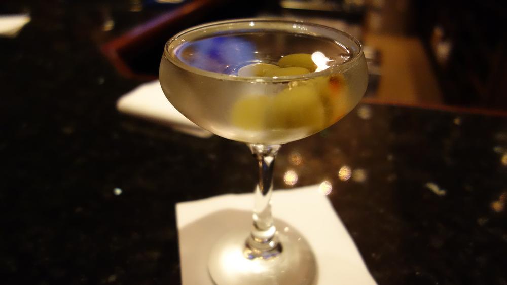 Je reçois donc un verre de martini avec une vodka de base, pas de vermouth et trois olives qui n’ont rien de Castelvetrano…, ce sont les petites olives au piment qu’on trouve vendues en bidons au supermarché…, du coup, c’est vraiment le pire martini de toute ma vie.