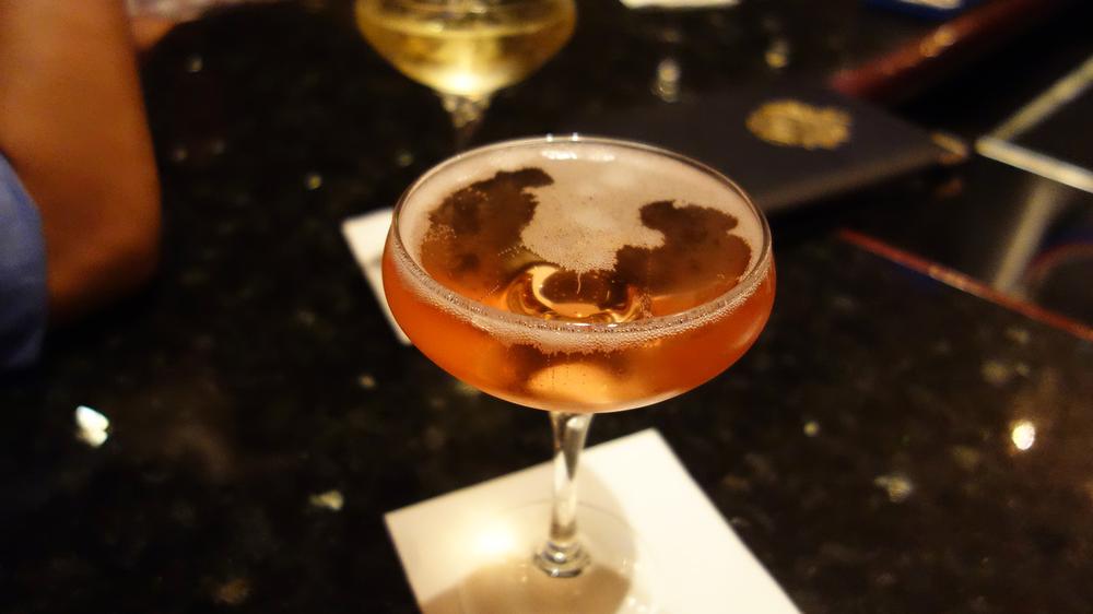 La serveuse hausse les épaules…, alors, dans une tentative désespérée pour me saouler au plus vite avant de partir, je commande un verre du “Trump blanc de blancs” et un “The Boardroom”, un cocktail qui devrait contenir du Dewar douze ans d’âge, du Carpano Antica, de l’Angostura bitters et des cerises au brandy.