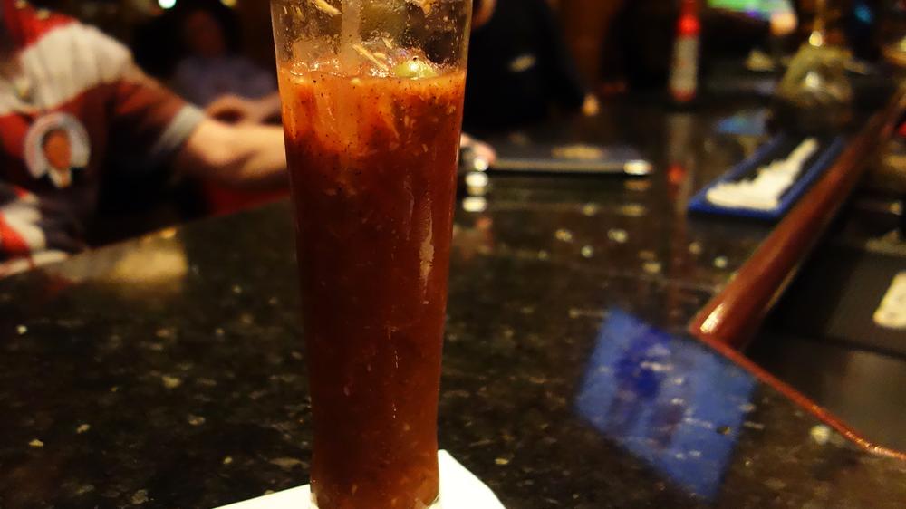 – Ce bloody mary est dégueulasse. On dirait qu’on y a ajouté une louche de raifort et la texture ressemble à celle des fibres d’un tapis mouillé”…, murmure-t-il.