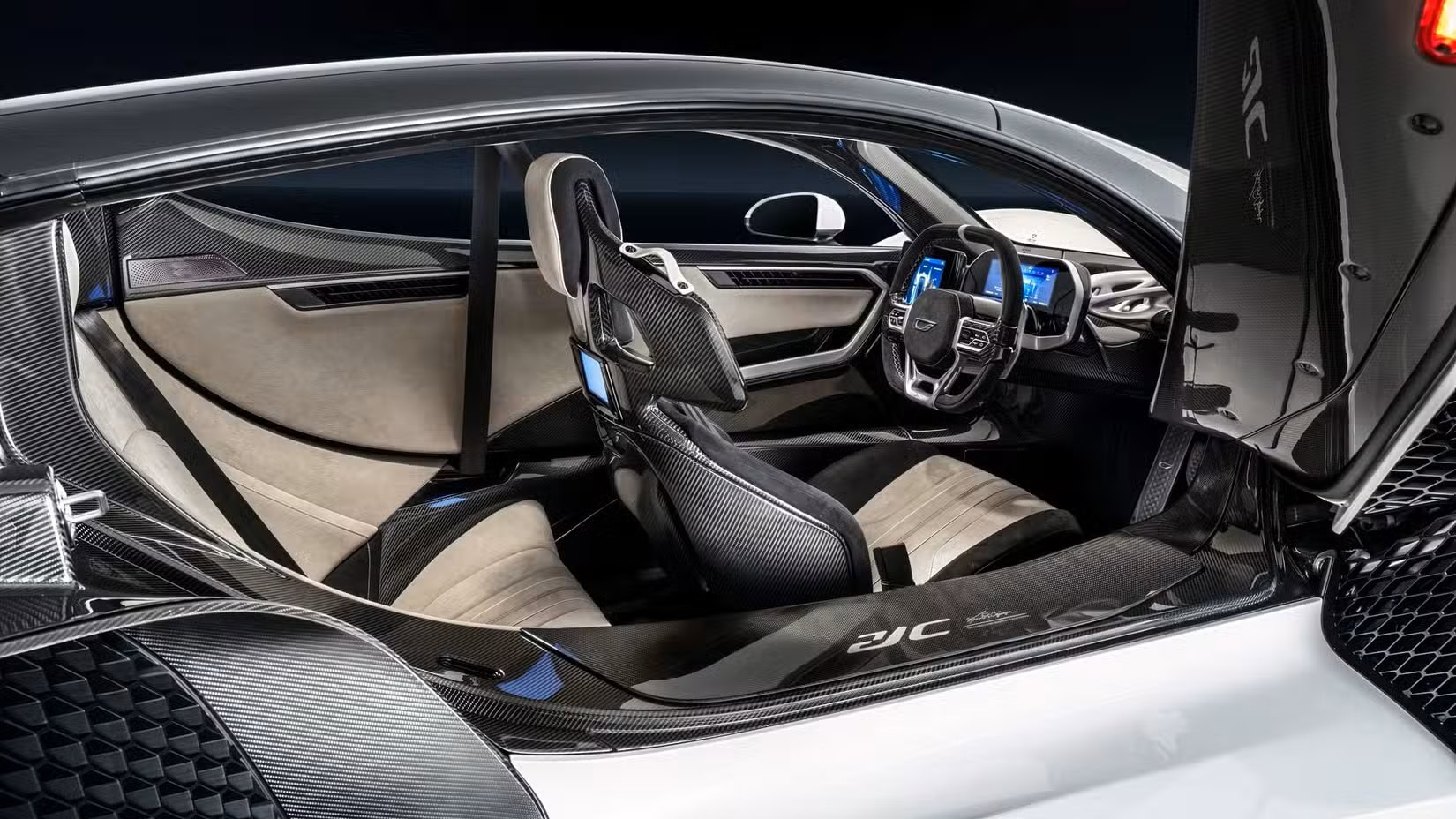 En cette “étroitesse”, la Czinger 21C (2024) est la reine… Sa valeur estimée est de 2 millions de dollars ! La Czinger 21C est une supercar américaine à siège central, avec un design époustouflant et des performances époustouflantes. En fait, on peut l’appeler hypercar car elle développe 1.250cv grâce à un V8 biturbo 2L9 entraînant les roues arrière avec deux moteurs électriques entraînant l’essieu avant. Combinée à une boîte de vitesses séquentielle à 7 rapports, la chaîne motopropulsive (sic !) permet à la 21C de passer de 0 à 60 mph en 1,9 seconde et d’atteindre une vitesse maximale de 253 mph.