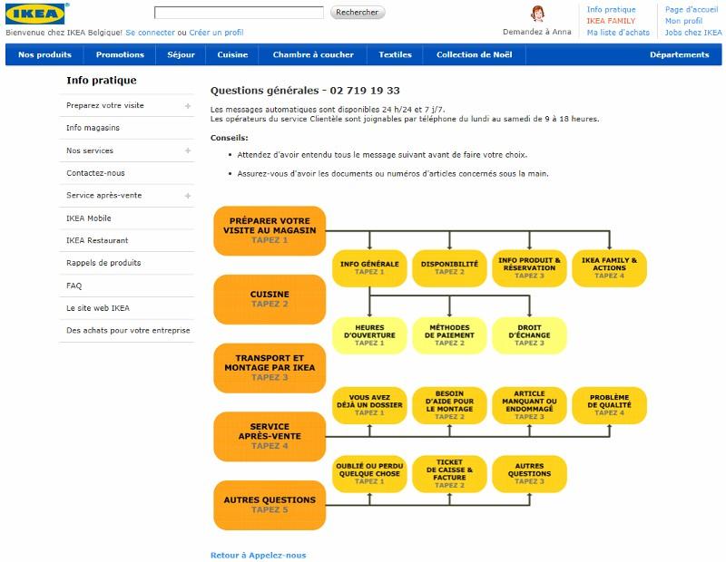 Je reforme le même numéro : Contactez-nous – Appelez-nous – Questions générales – Préparez votre visite au magasin, tapez 1 – blablabla info générale, tapez 1… disponibilité, tapez 2… info produit et réservation, tapez 3… Ikéa family et actions, tapez 4… – Cuisine, tapez 2 – blablabla heures d’ouverture, tapez 1… méthodes de paiement, tapez 2… droit d’échange, tapez 3… – Transports et montage par Ikéa, tapez 3 – blablabla – Service après-vente, tapez 4 – blablabla vous avez déjà un dossier, tapez 1… besoin d’aide pour le montage, tapez 2… article manquant ou endommagé, tapez 3… Je re-clique… et le même robot me renvoie sur le même service après-vente, qu’on ne peut joindre que physiquement en allant sur place, comme hier, dimanche…
