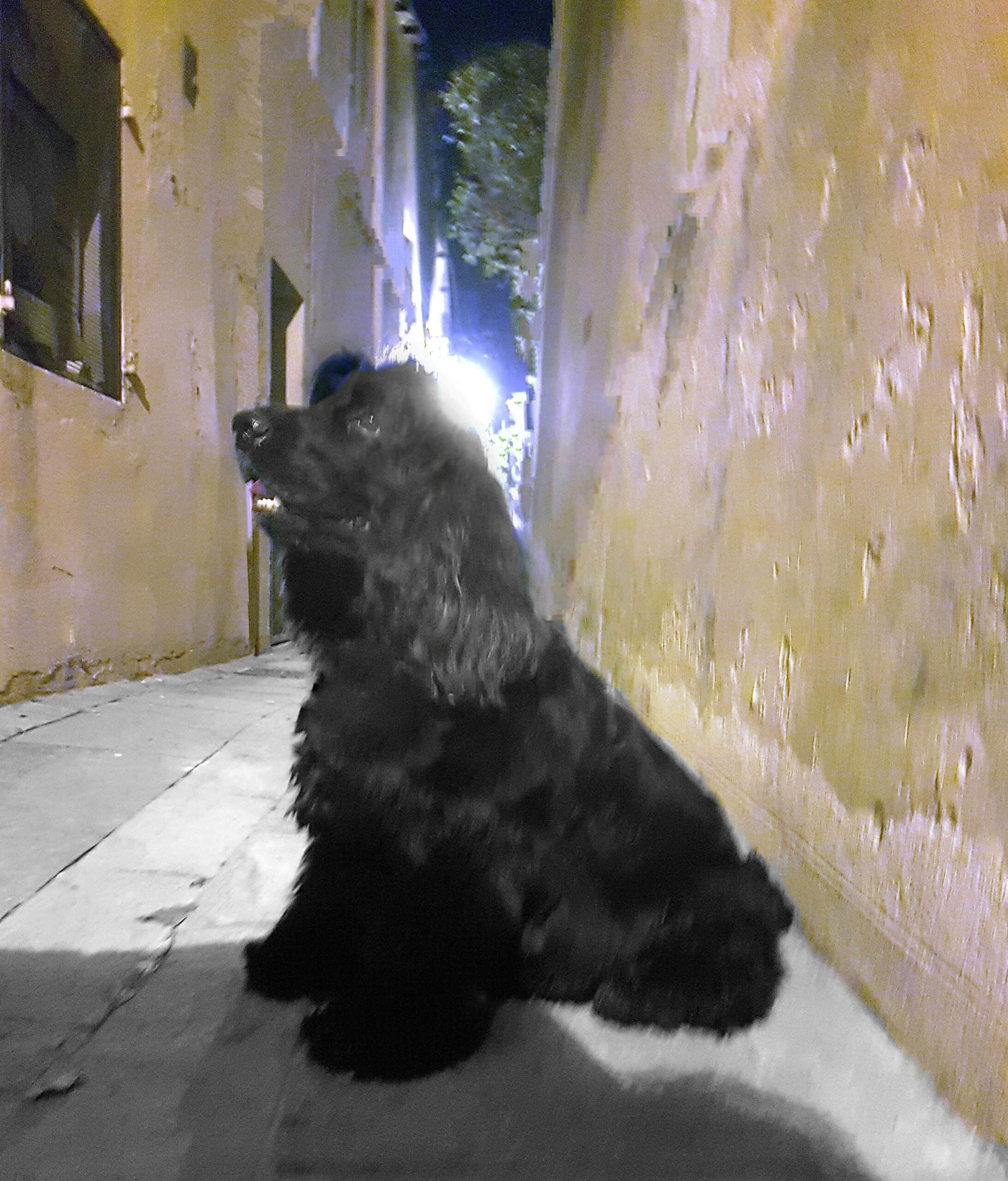 -Dites-moi, mon cher machin… Heu, chose… Indispensable ami Blacky, Cocker… J’ai ici un petit problème, pas moyen de mettre la main surun chien sage et fidèle, alors je m’aperçois que tu es là…