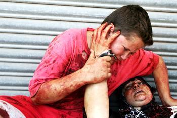 “Peuples, soyez attentifs, car l’indignation du Seigneur va fondre sur toutes les nations. Sa fureur sur toutes les armées. Elles mourront de mort sanglante, et ceux qui auront été tués seront jetés là, une puanteur horrible s’élèvera de leurs corps, et les montagnes dégoutteront de sang“… C’est ISAÏE qui a écrit ces horreurs…