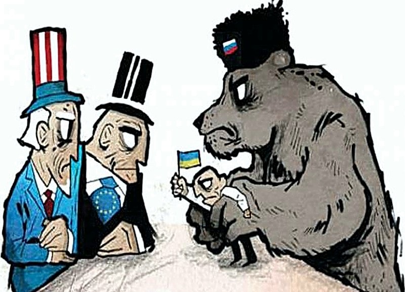 La presse à grand tirage et les chaînes de télévisions occidentales, pupitres où des speakers aux cravates luisantes comme des dos de maquereaux et, sur leur visage, une grimace humanitaire “à la Kouchner”, lobotomisent les troupeaux de crédules à lire/écouter les formules creuses concoctées à Washington, Londres, Berlin ou Paris, informent inlassablement que la Russie est le pays du diable, responsable de tous les maux, les Russes étant plus massacreurs que les nazis ! Ils mettent en scène quasi religieusement le proconsul Saakashvili devant un drapeau européen, tout bleu, azur, avec des étoiles dorées, rassurantes, civilisées.