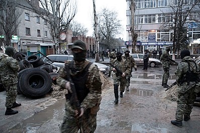 Un commando de dizaines d’hommes masqués au professionnalisme évident a pris le contrôle du bâtiment des services ukrainiens (SBU) et du poste de police, sans rencontrer de résistance, il s’est emparé d’un stock d’armes, distribuées à des civils.