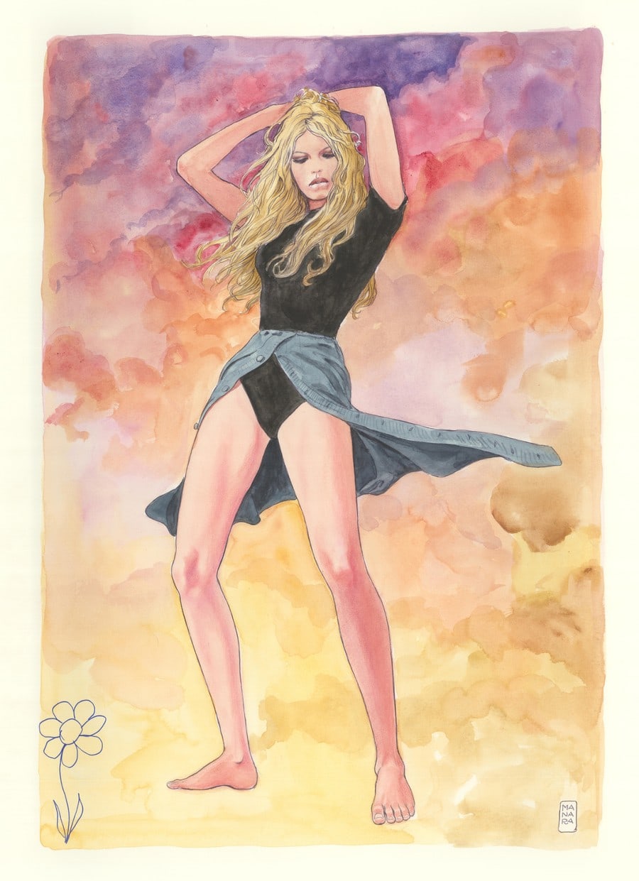 – Comme inventer que Manara a souvent pensé à l’actrice comme canon de beauté, mais également comme l’antithèse de la belle qui se tait, et d’ajouter d’illustres pensées du génie : “Je me suis servi d’elle comme d’un modèle moral…, il y a un peu de la magnétique BB des années ’60 chez toutes les héroïnes que j’ai dessinées, toujours des femmes séduisantes et indépendantes”…