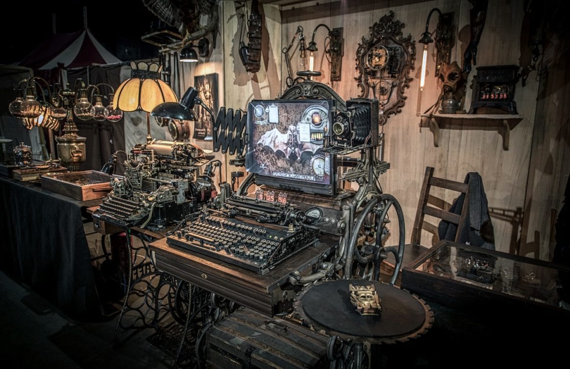 À l’origine, le Steampunk est un genre littéraire dont Jules Verne, Albert Robida ou H. G. Wells fournissent les caractéristiques et l’esthétique de l’univers d’expression à travers leurs romans ou les adaptations cinématographiques qui en ont été faites : Vingt mille lieues sous les mers de Richard Fleischer (1954), Aventures extraordinaires de Vynalez Zkazy et Karel Zeman (1957) ou La Machine à explorer le temps de George Pal (1960).