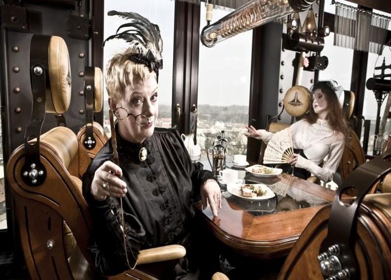 L’expression “Steampunk”, qui signifie littéralement “punk à vapeur”, parfois traduite par “futur à vapeur”, est un terme inventé pour qualifier un genre de la littérature de science-fiction né à la fin du XXe siècle, dont l’action se déroule dans l’atmosphère de la société industrielle du XIXe siècle…, le terme fait référence à l’utilisation massive des machines à vapeur au début de la révolution industrielle puis à l’époque victorienne.