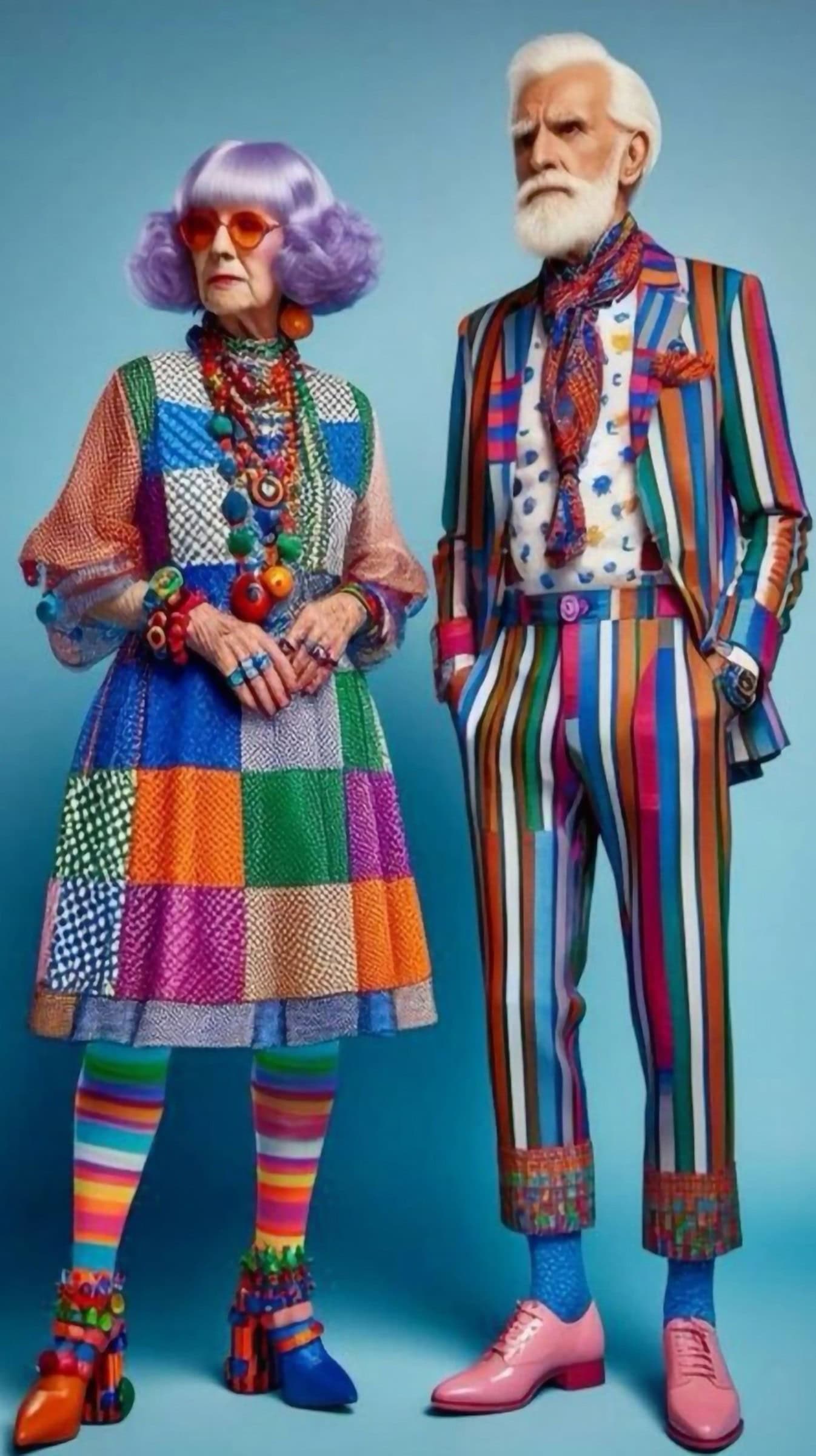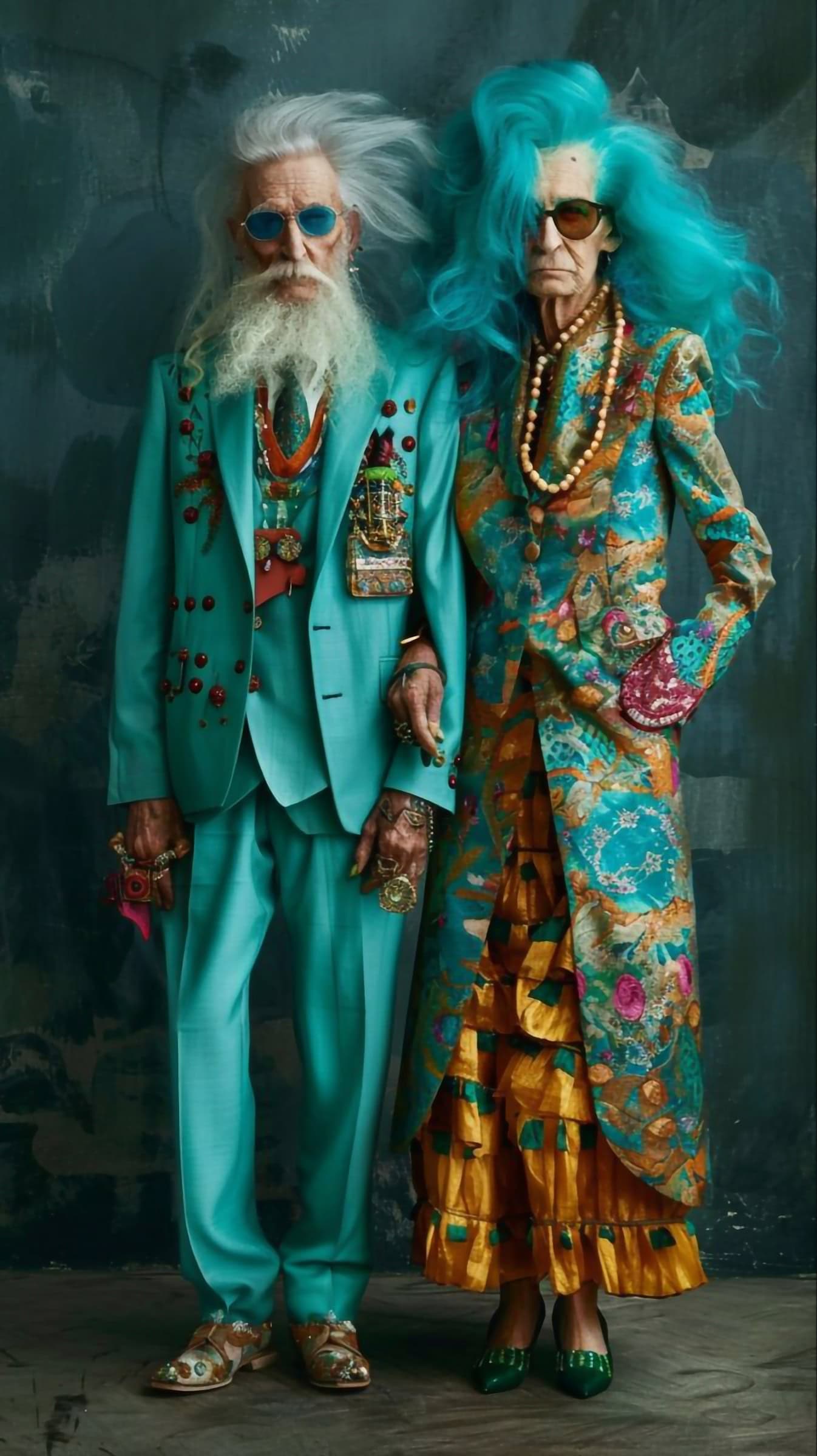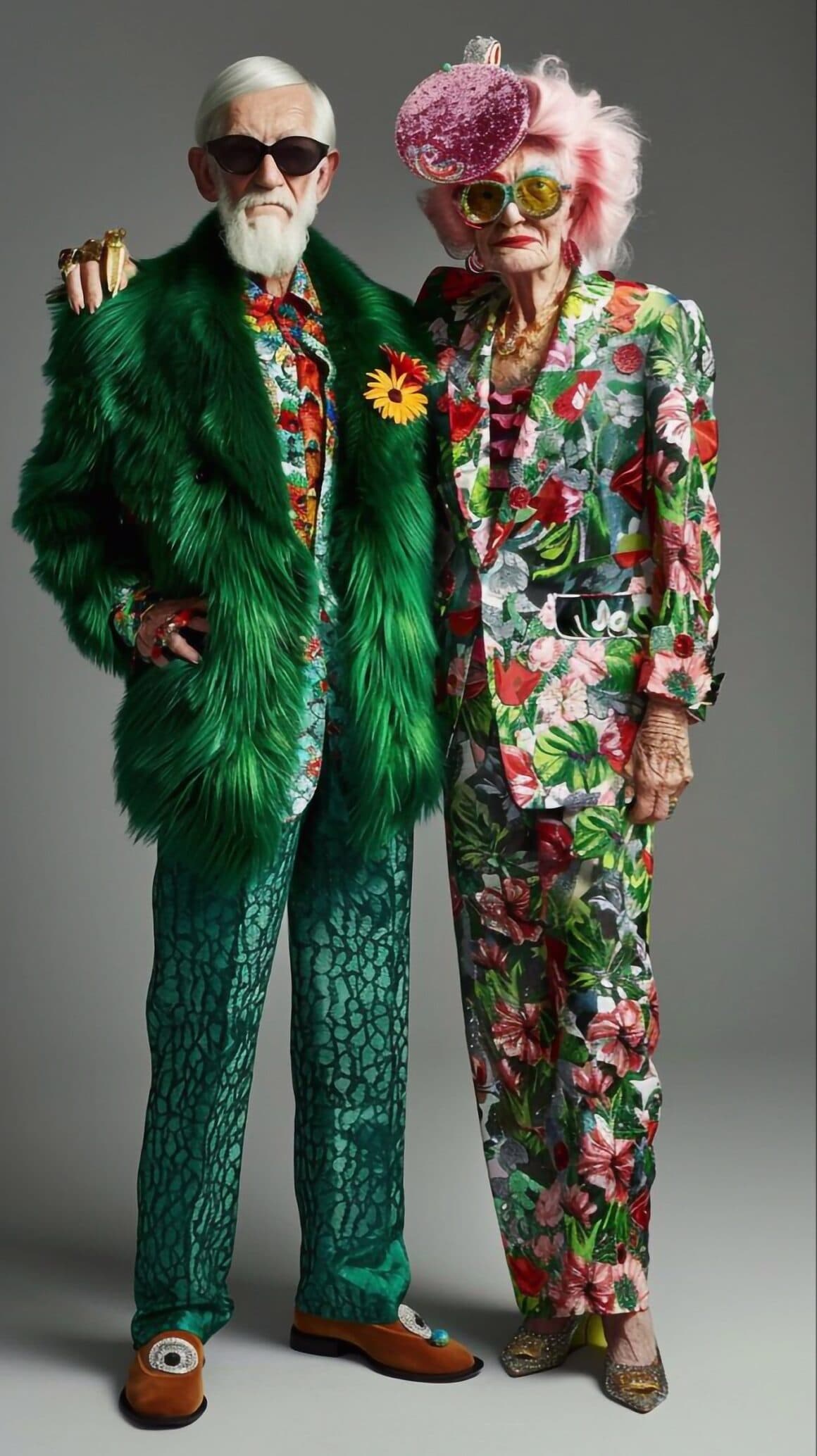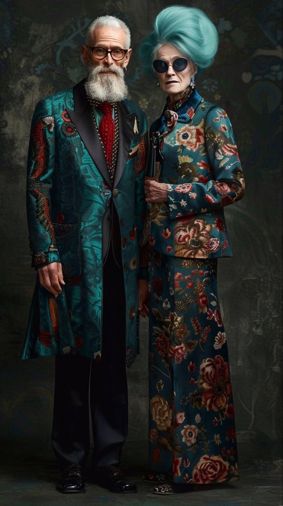 Et puis, il faut aussi saisir l’impact de la médiatisation de ces vieux fous et folles notamment à partir de leur passage à la télévision américaine et qui font scandale sur le plateau quoique applaudis par Donald Trump et Elon Musk, un bref épisode télévisuel, les look’s “Chromes” causant un choc national conduisant à la suppression de l’émission. Par ailleurs, l’impact des suiveurs et des suiveuses réunis est aussi à évaluer sur la diffusion de l’imagerie anticonformiste, troublant l’ordre de l’apparence lisse, en rupture avec tout ce qui se fait. L’influence se fait sentir au niveau de la transgression qu’elle produit, d’une part sur le plan esthétique, ensuite sur le plan philosophique, enfin à celui de l’apparence. Une des hypothèses que je fais sur l’émergence d’un style “Chromes” en France réside dans la diffusion des looks qui pourraient permettre l’identifcation à une mouvance rebelle du troisième âge…