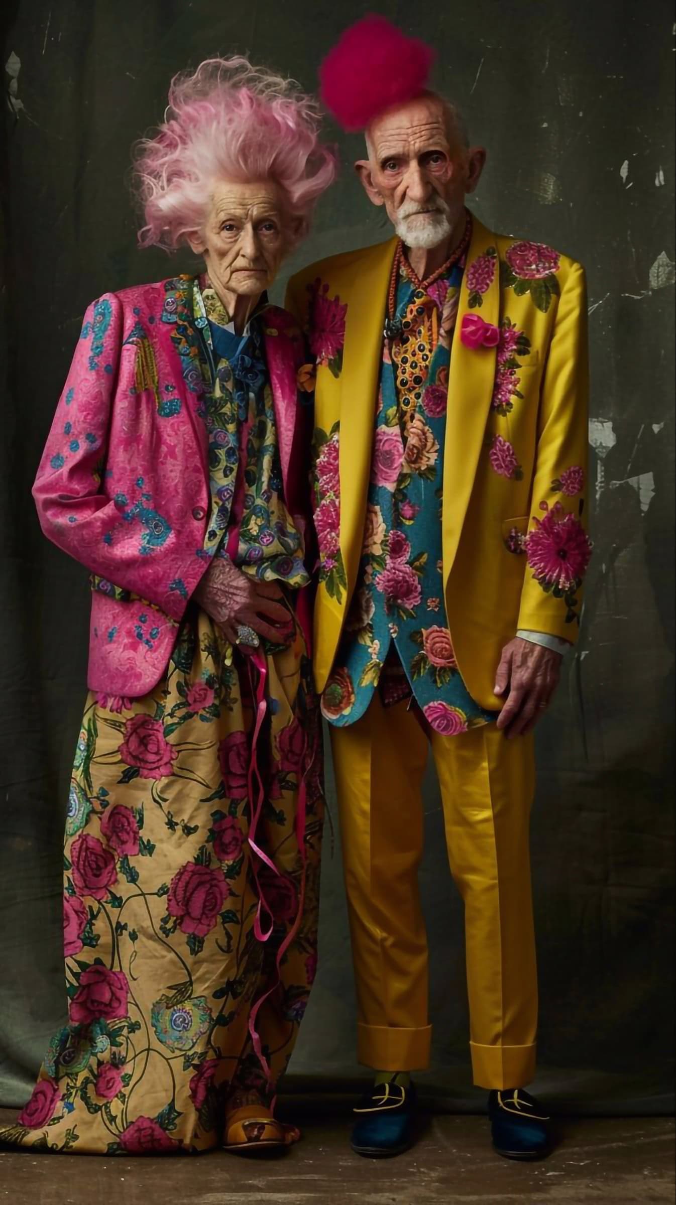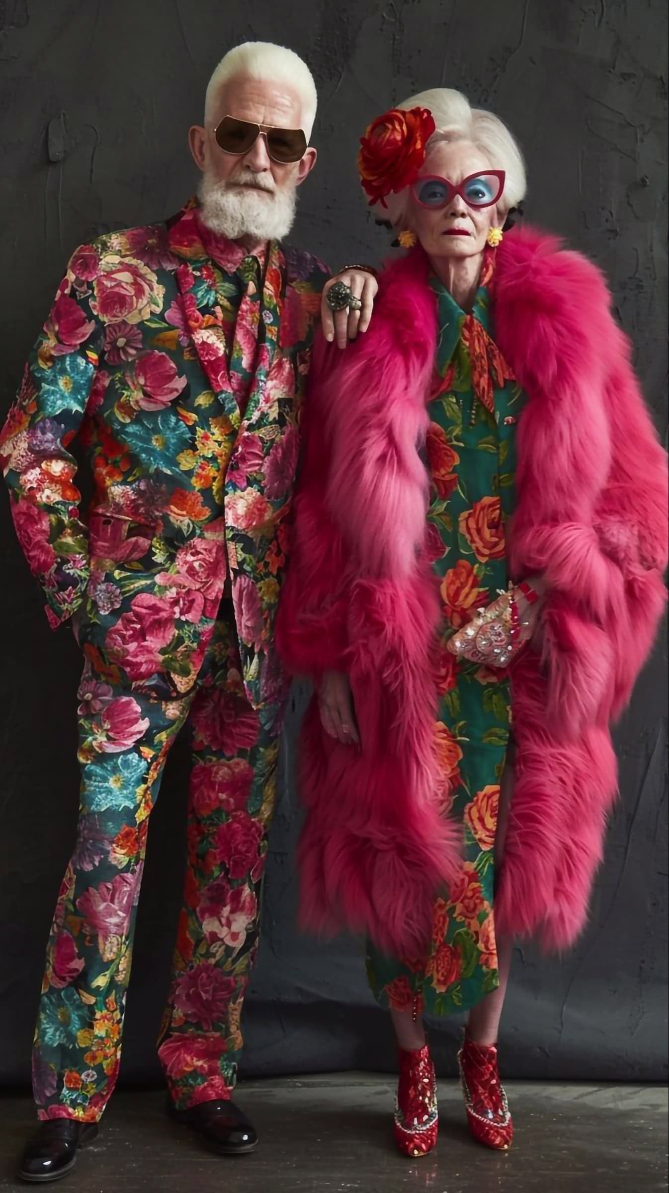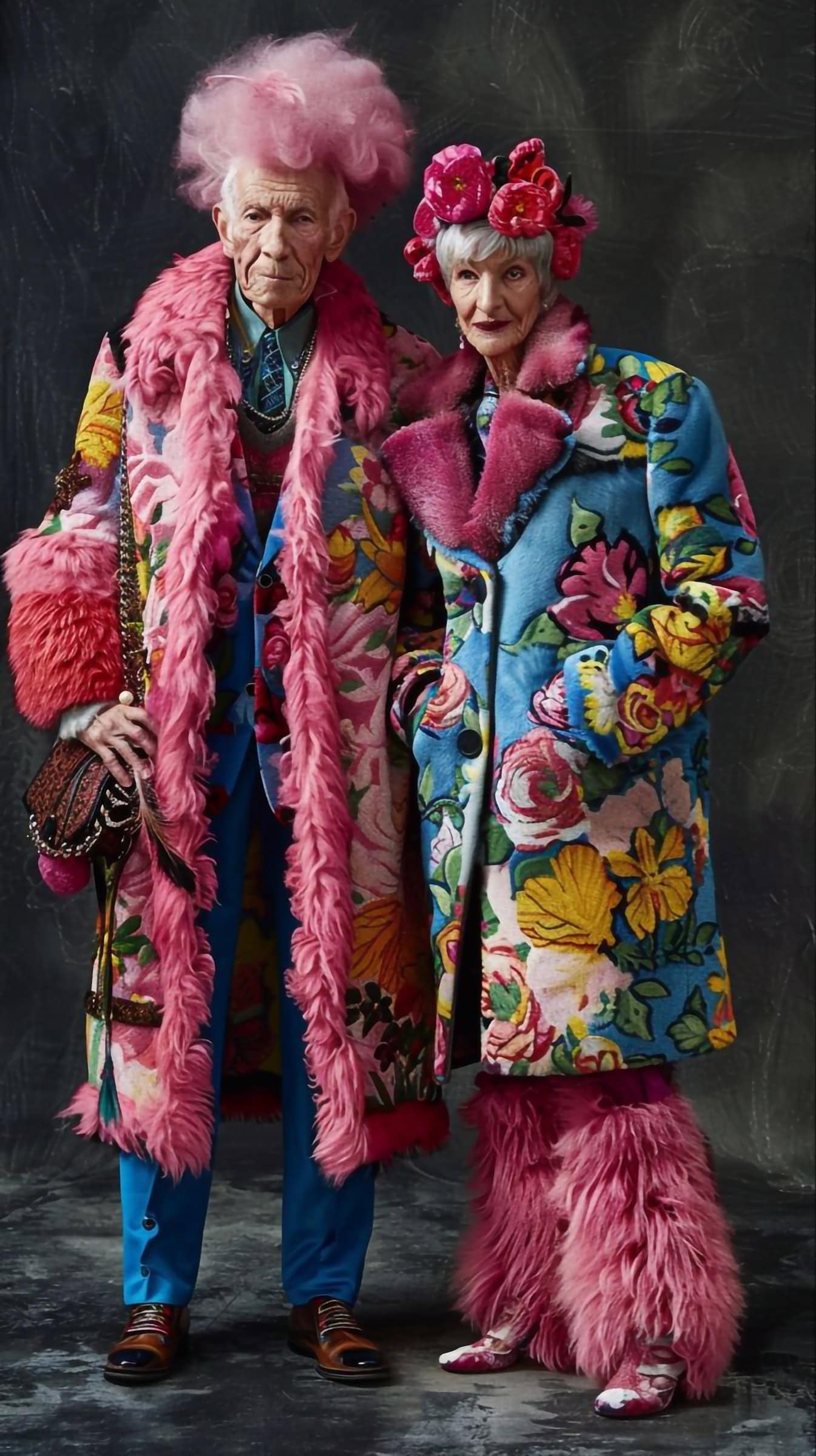 Et puis, il faut aussi saisir l’impact de la médiatisation de ces vieux fous et folles notamment à partir de leur passage à la télévision américaine et qui font scandale sur le plateau quoique applaudis par Donald Trump et Elon Musk, un bref épisode télévisuel, les look’s “Chromes” causant un choc national conduisant à la suppression de l’émission. Par ailleurs, l’impact des suiveurs et des suiveuses réunis est aussi à évaluer sur la diffusion de l’imagerie anticonformiste, troublant l’ordre de l’apparence lisse, en rupture avec tout ce qui se fait. L’influence se fait sentir au niveau de la transgression qu’elle produit, d’une part sur le plan esthétique, ensuite sur le plan philosophique, enfin à celui de l’apparence. Une des hypothèses que je fais sur l’émergence d’un style “Chromes” en France réside dans la diffusion des looks qui pourraient permettre l’identifcation à une mouvance rebelle du troisième âge…