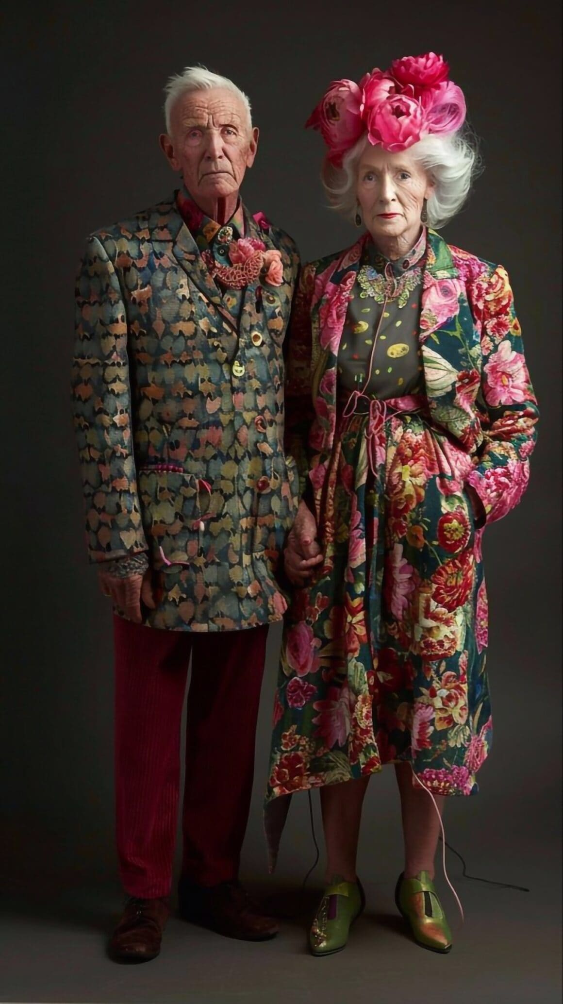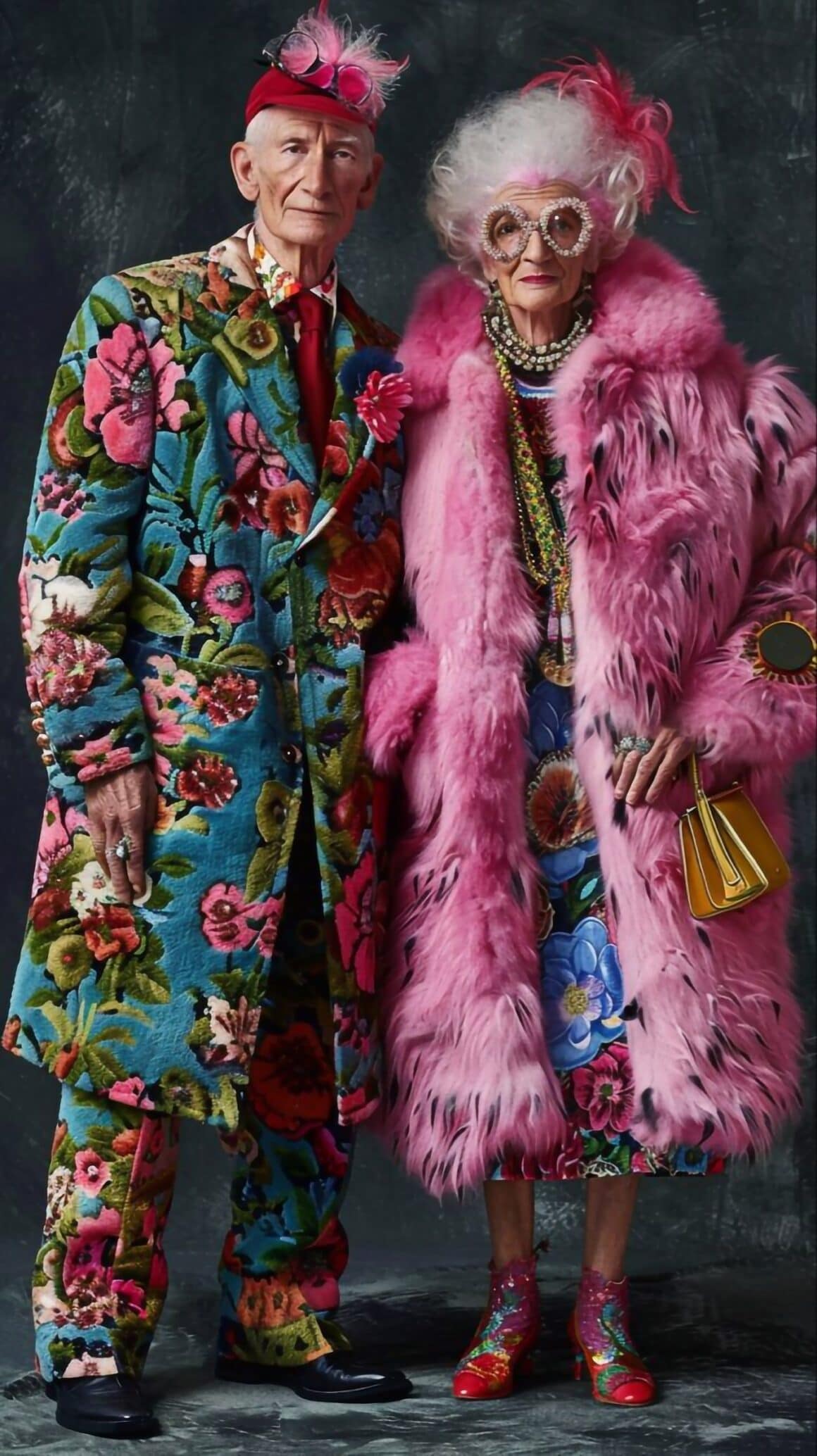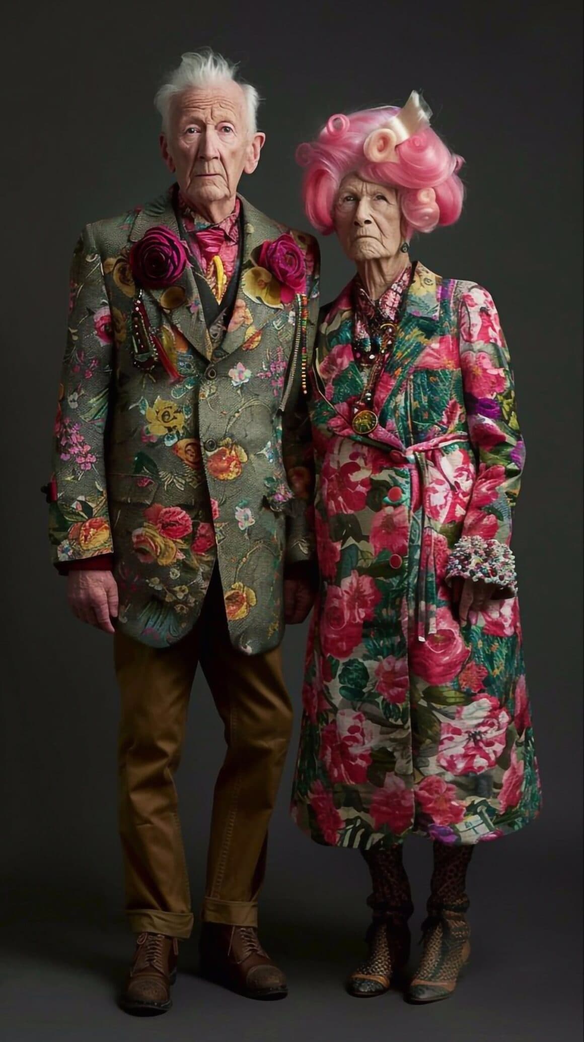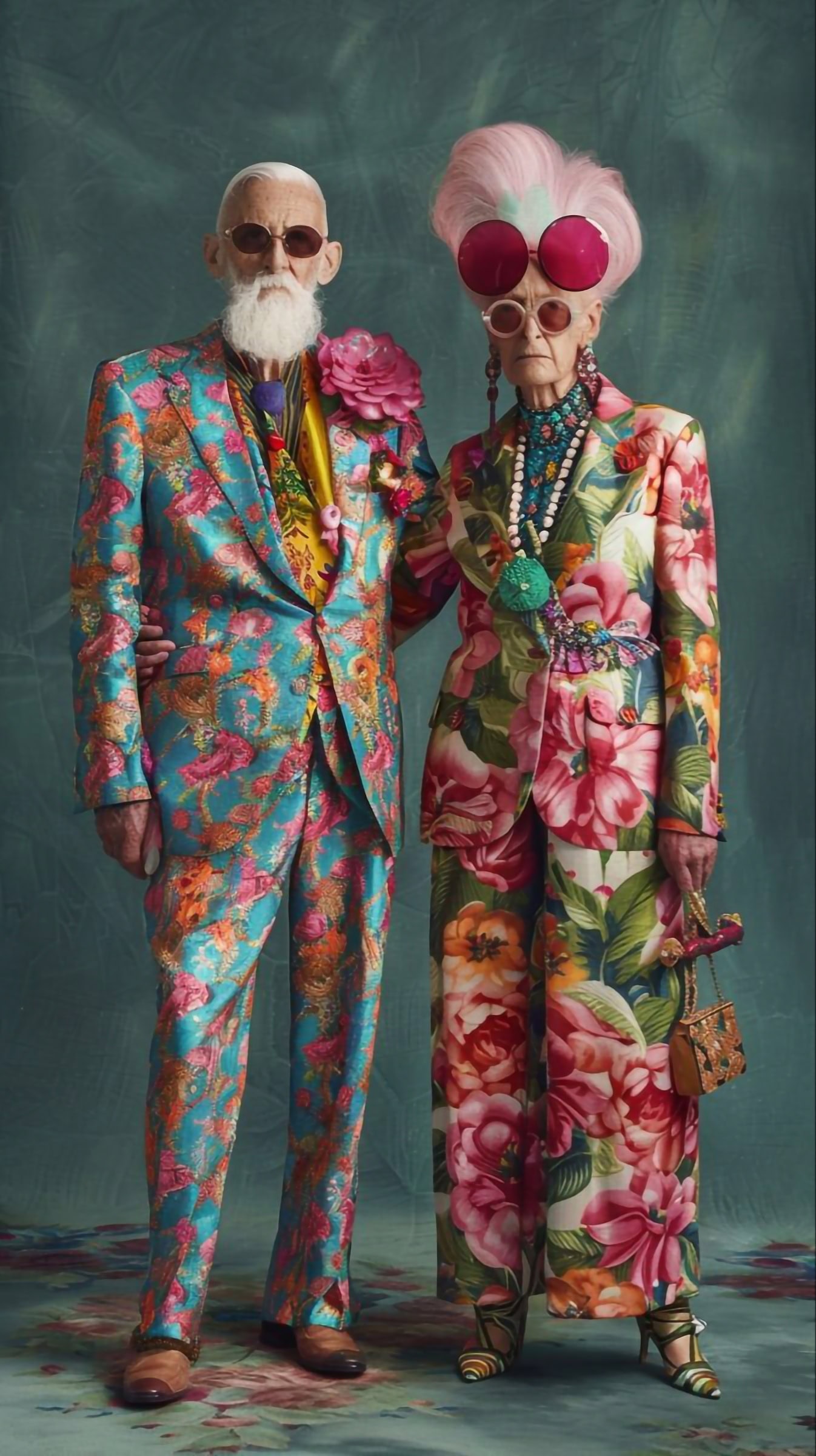 Et puis, il faut aussi saisir l’impact de la médiatisation de ces vieux fous et folles notamment à partir de leur passage à la télévision américaine et qui font scandale sur le plateau quoique applaudis par Donald Trump et Elon Musk, un bref épisode télévisuel, les look’s “Chromes” causant un choc national conduisant à la suppression de l’émission. Par ailleurs, l’impact des suiveurs et des suiveuses réunis est aussi à évaluer sur la diffusion de l’imagerie anticonformiste, troublant l’ordre de l’apparence lisse, en rupture avec tout ce qui se fait. L’influence se fait sentir au niveau de la transgression qu’elle produit, d’une part sur le plan esthétique, ensuite sur le plan philosophique, enfin à celui de l’apparence. Une des hypothèses que je fais sur l’émergence d’un style “Chromes” en France réside dans la diffusion des looks qui pourraient permettre l’identifcation à une mouvance rebelle du troisième âge…