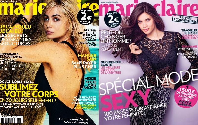 Depuis les 20 tentations slim, saines et sun de Madame Figaro (un article publicitaire spécial minceur vantant les mérites de différents maillots de bain, d’un gâteau aux fleurs (sic !), d’un illuminateur pour le corps (re-sic !) et d’un raffermisseur électronique (re-re-sic !)…, au dossier de Grazia : Bien coiffée même à la plage !, en passant par les 10 conseils séduction pour mettre tous les hommes à vos pieds de Marie-Claire, vous avez le choix dans les armes.