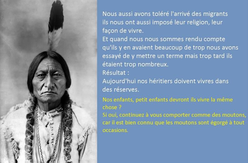 Tout est tellement confus que certains génies de l’imbécilité ont créé des slogans Facebookiens comparant les populations blanches européennes (surtout “Gauloises”), victime de l’immigration des “muslims”…, aux Amérindiens natifs massacrés par les migrants européens (nos ancêtres)… ce qui est l’origine des USA…